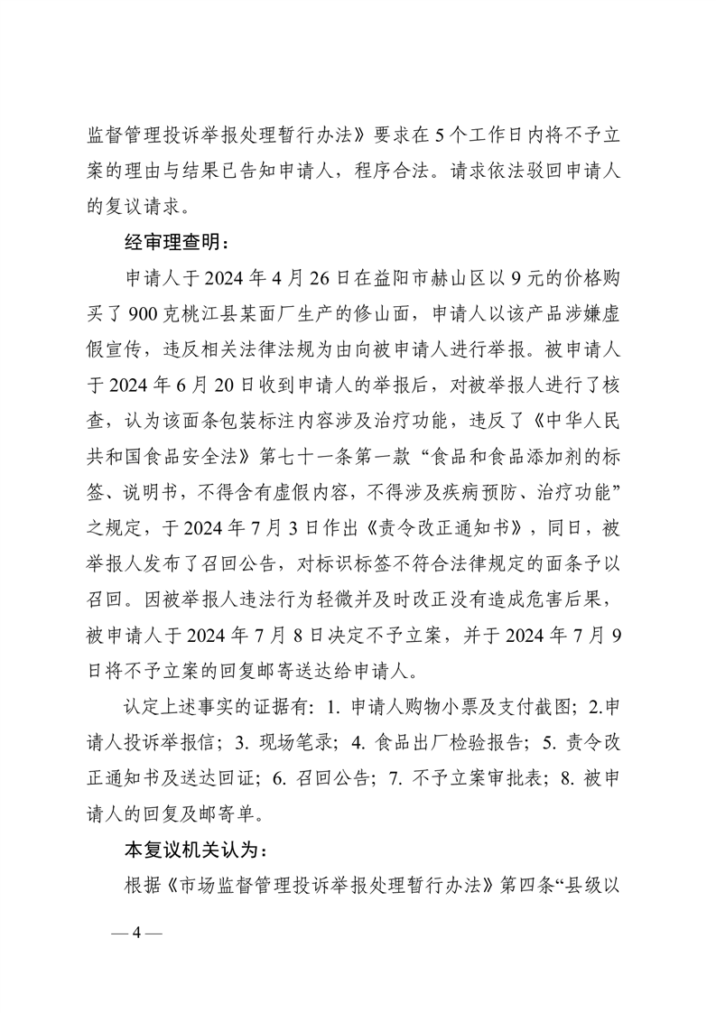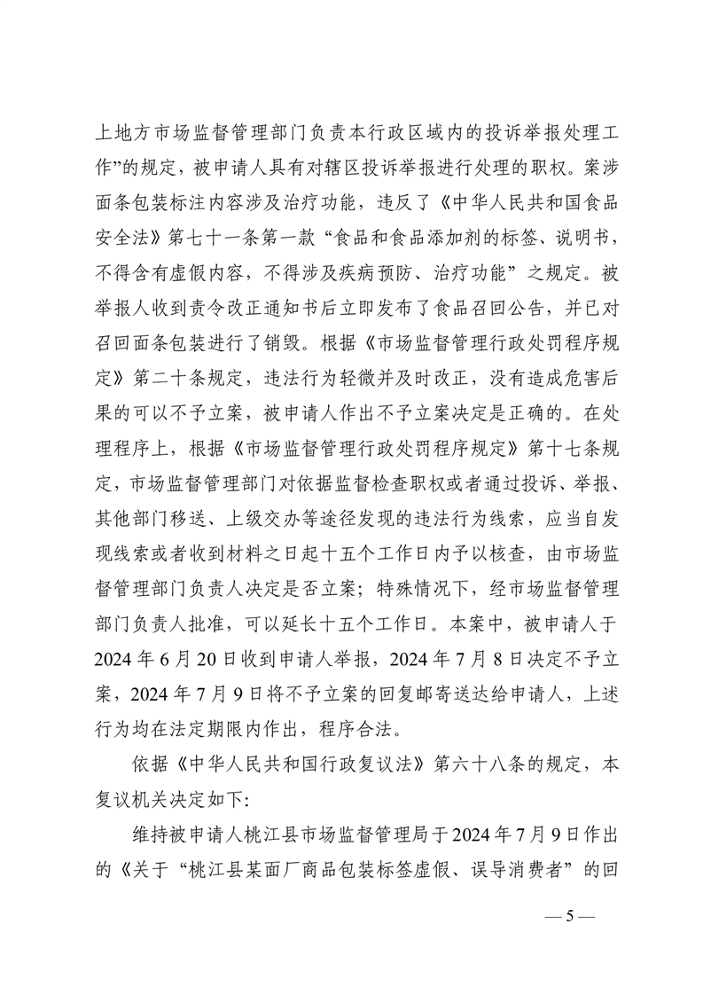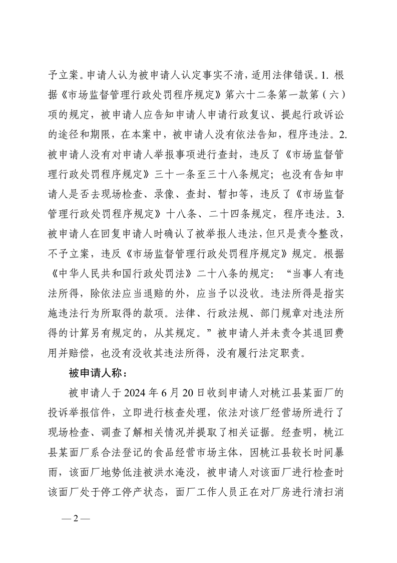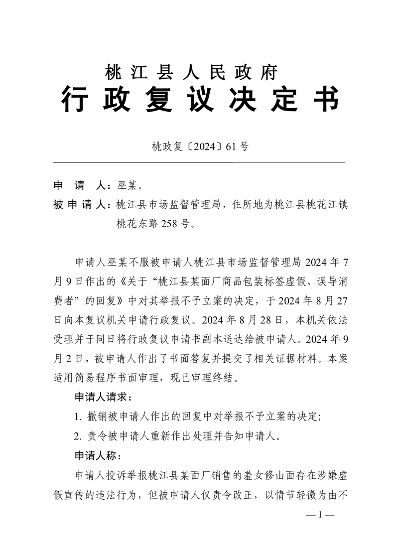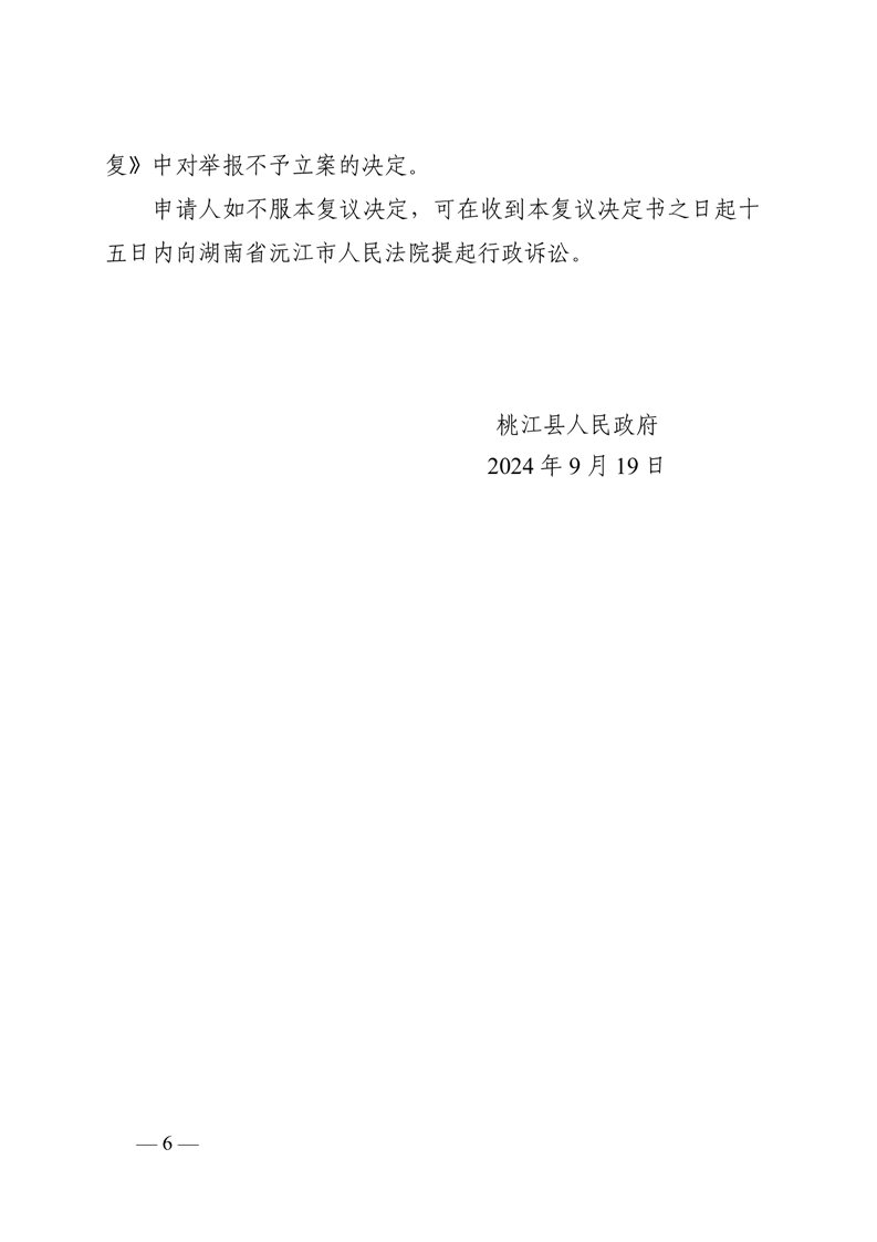行 政 复 议 决 定 书桃政复〔2024〕61号