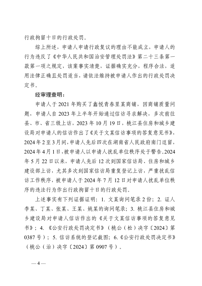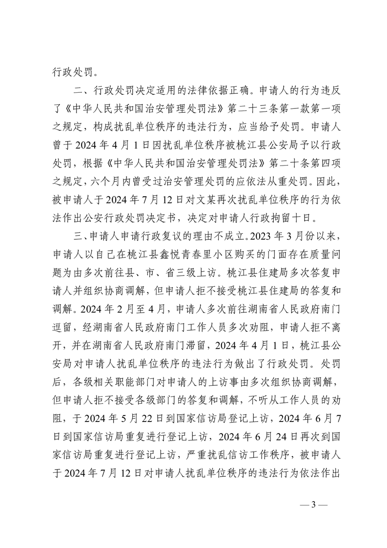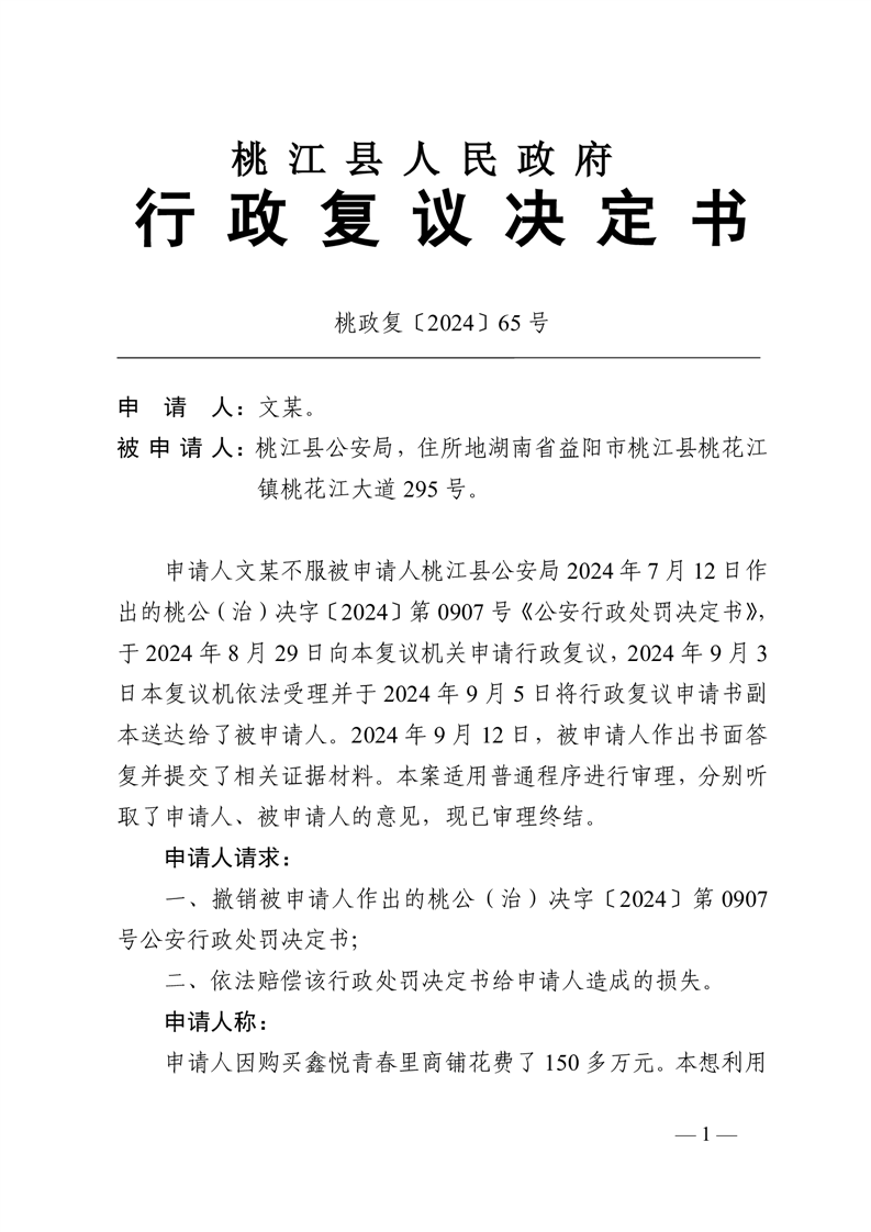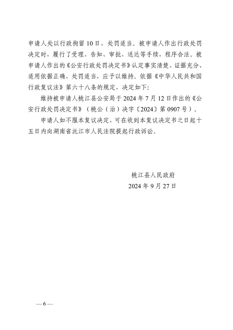 行 政 复 议 决 定 书桃政复〔2024〕65号