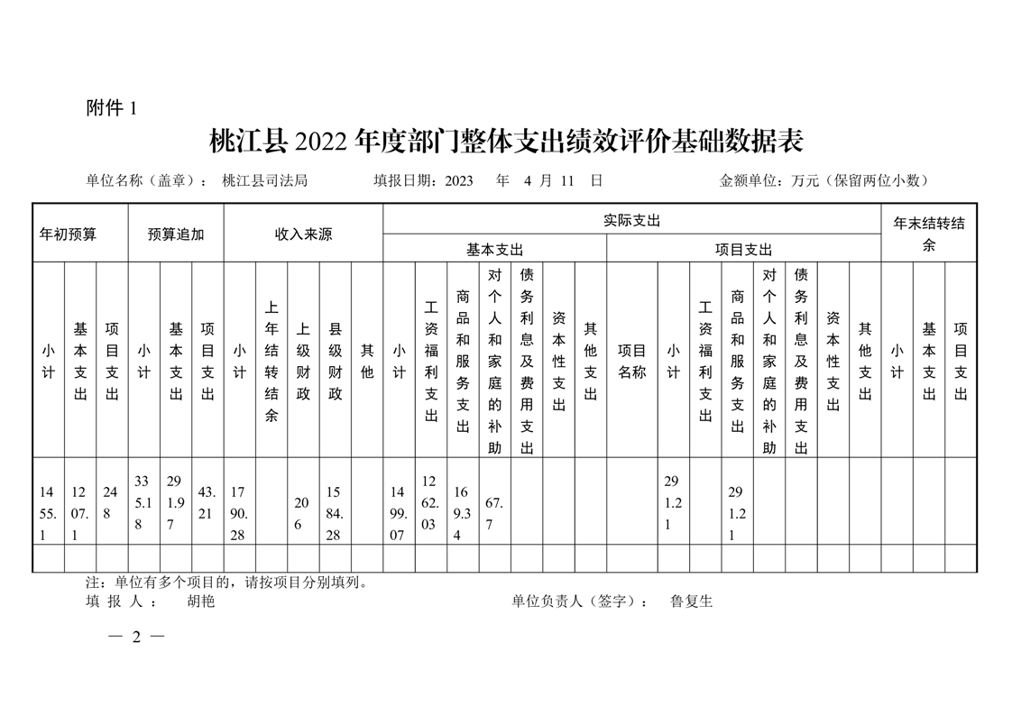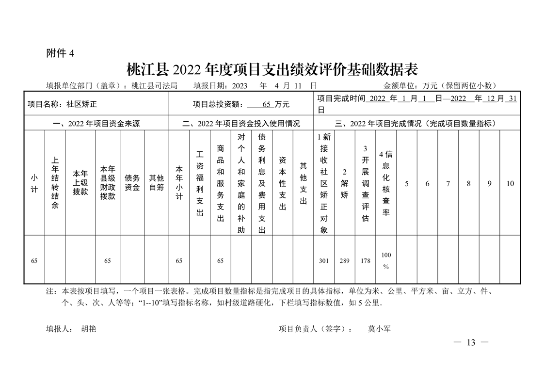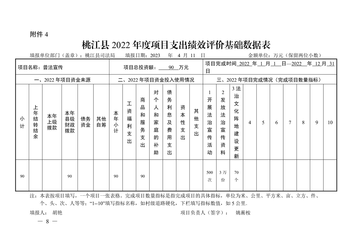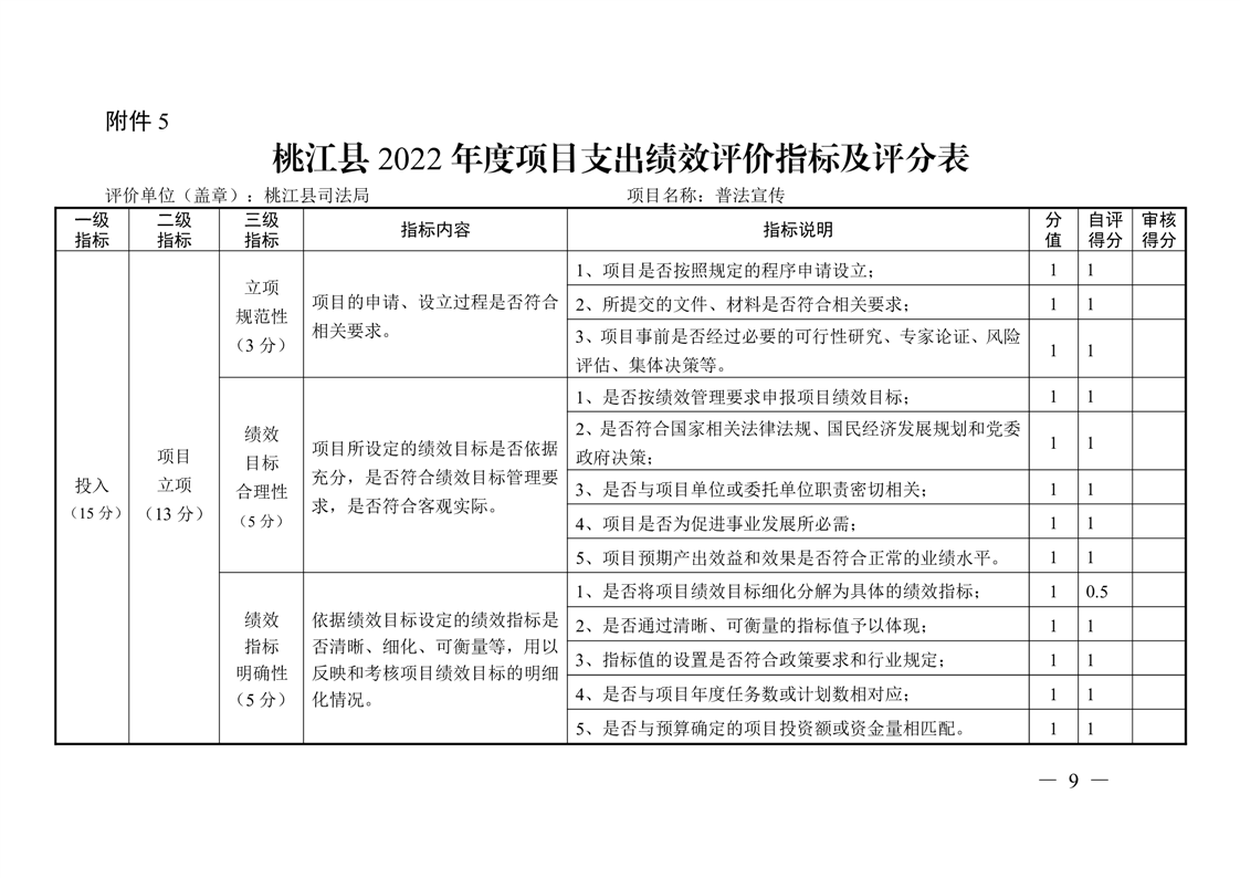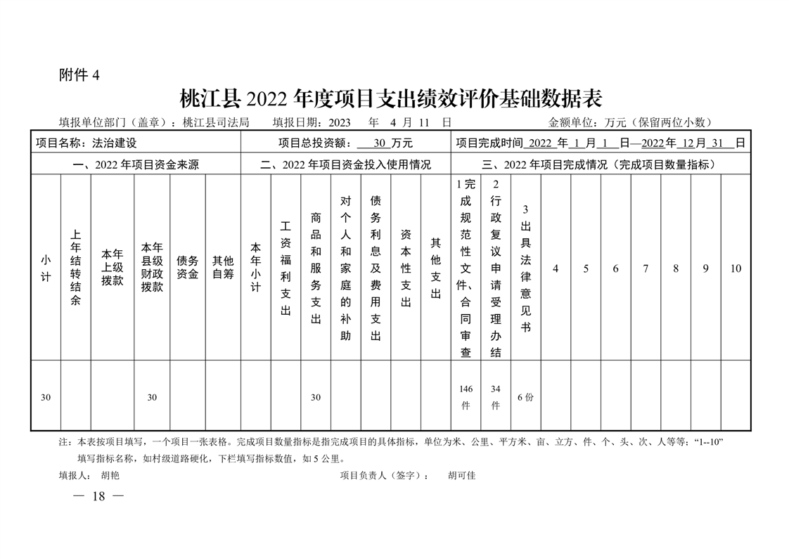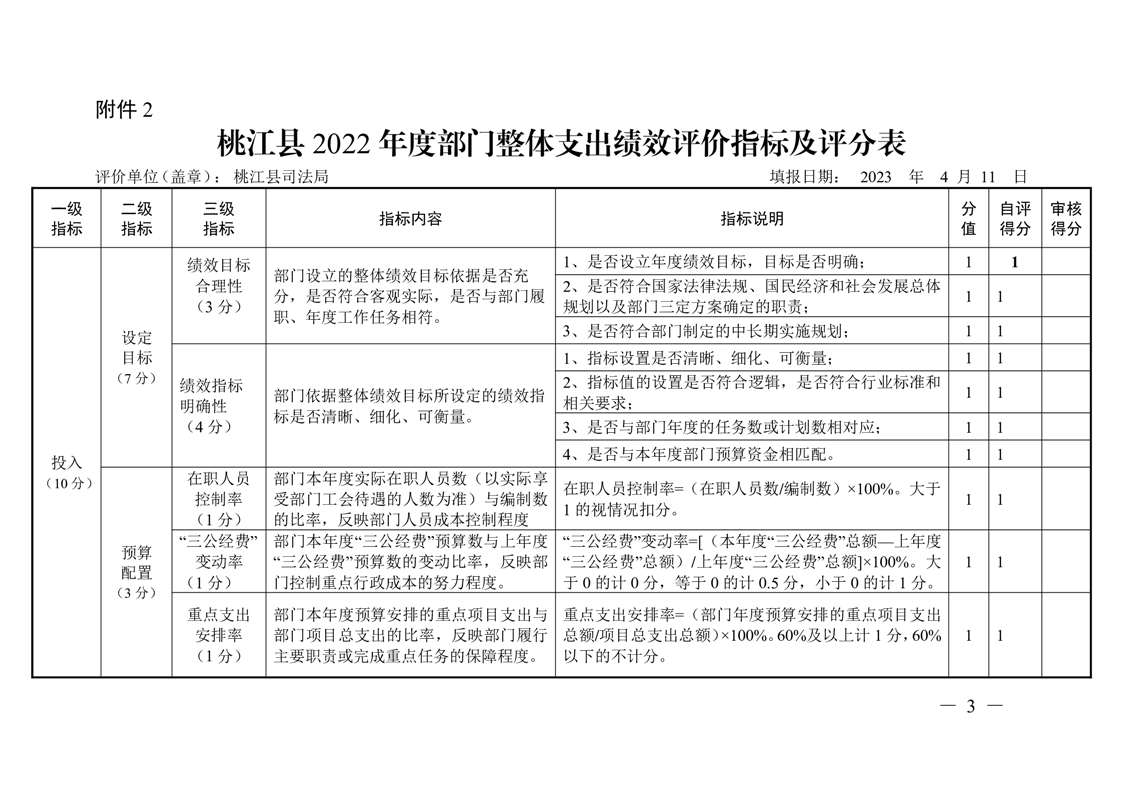桃江县司法局2022年绩效评价表格