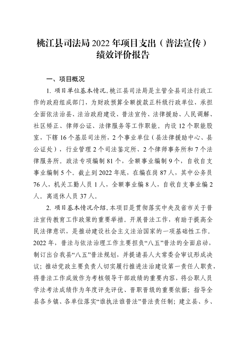 桃江县司法局2022年项目支出绩效评价报告(普法宣传)