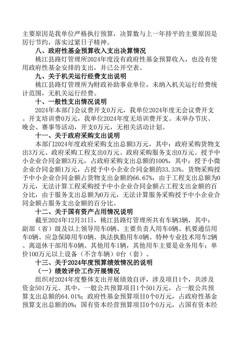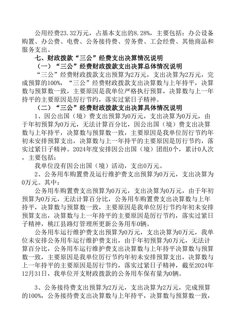 桃江县路灯管理所2024年部门决算公开说明