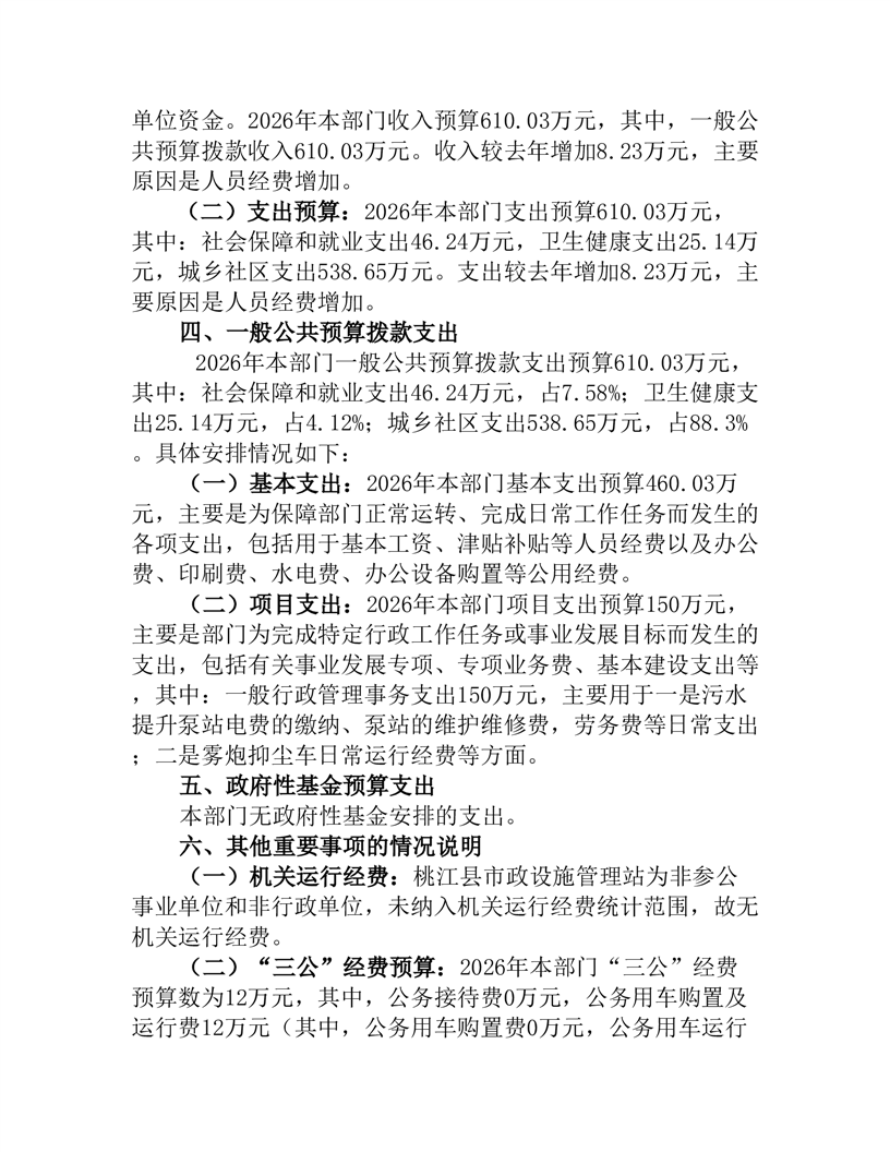 桃江县市政设施管理站2026年部门预算公开说明