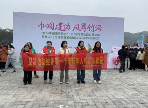 为进一步提升全社会对未成年人保护工作的认识,加大《未成年人保护法》的宣传力度,引导广大妇女群众关心关注未成年人保护工作,有效保障未成年人合法权益。3月8日,农业农村局以2024年益阳市纪念“三八”女神节活动为契机,在桃花江竹海景区积极开展未成年人保护法宣传活动,提高全社会妇女群众保护未成年人的意识和能力,营造关爱和保护未成年人健康成长的浓厚氛围。