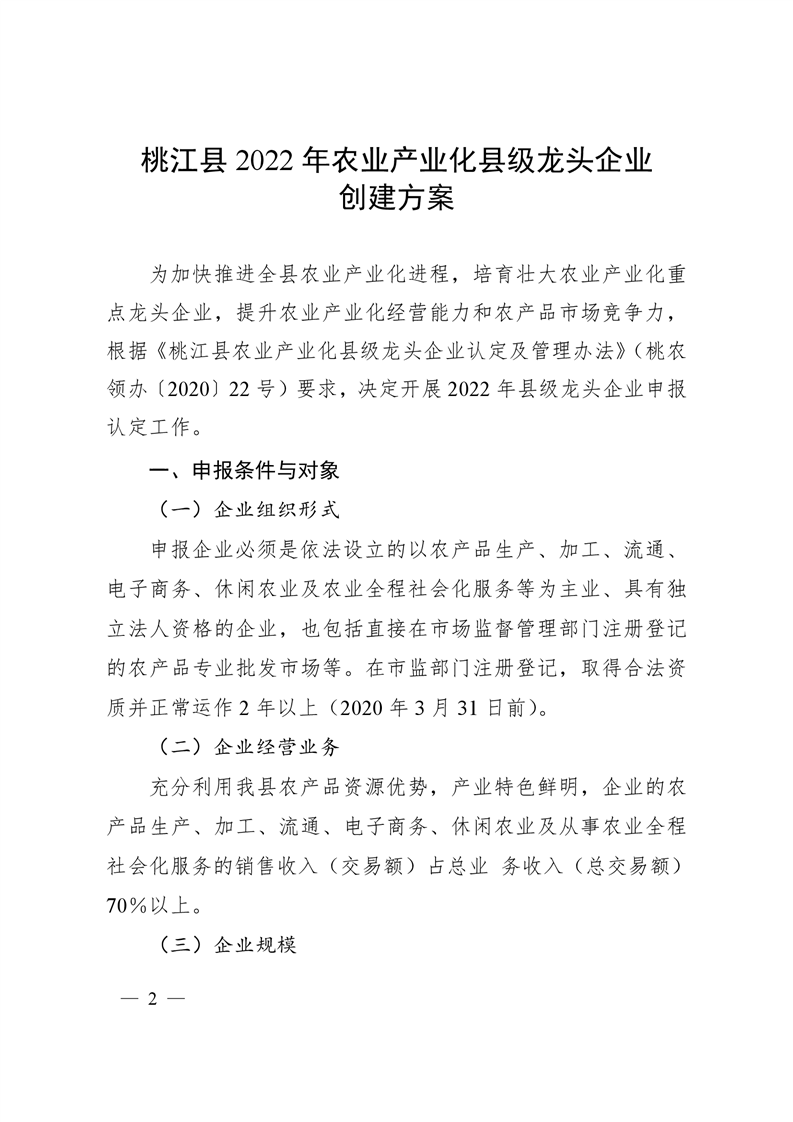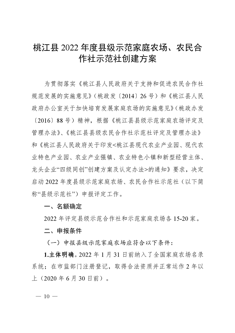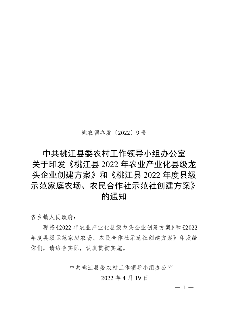 《桃江县2022年农业产业化县级龙头企业创建方案》和《桃江县2022年度县级示范家庭农场、农民合作社示范社创建方案》公示