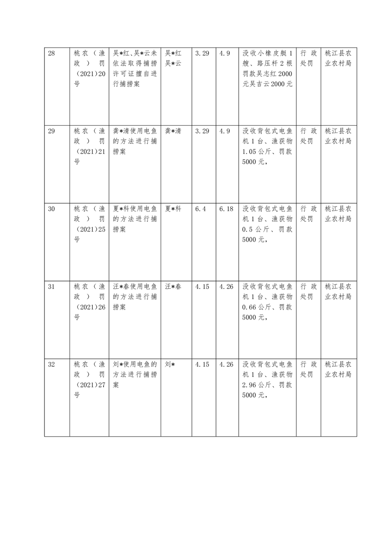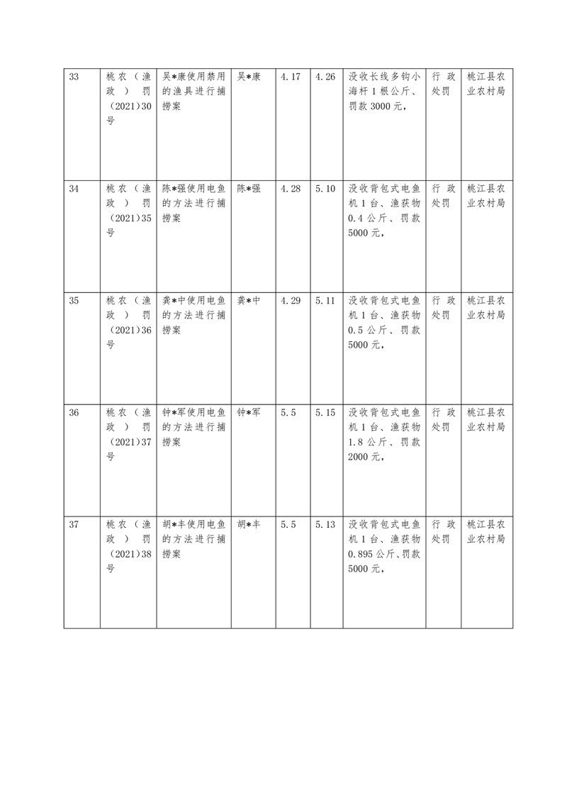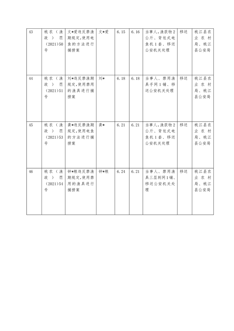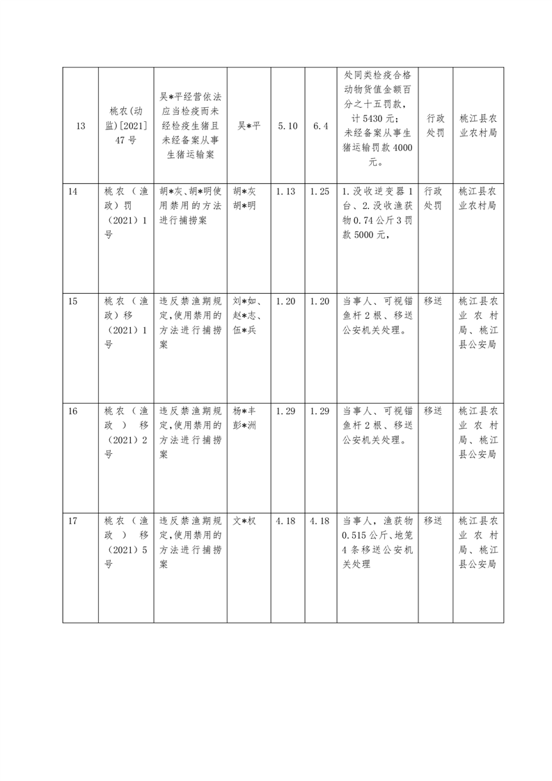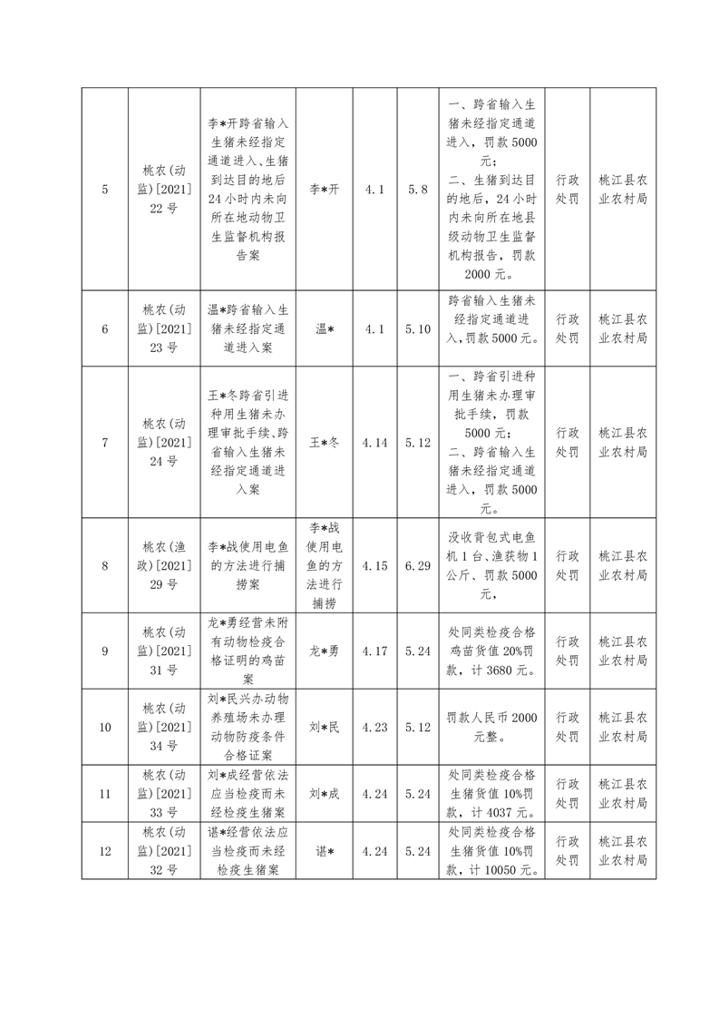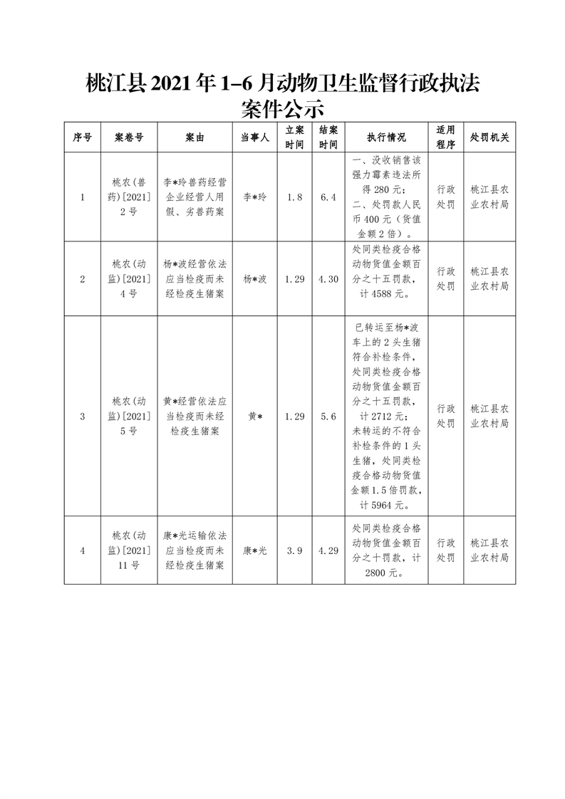 桃江县2021年1-6月动物卫生监督行政执法案件公示
