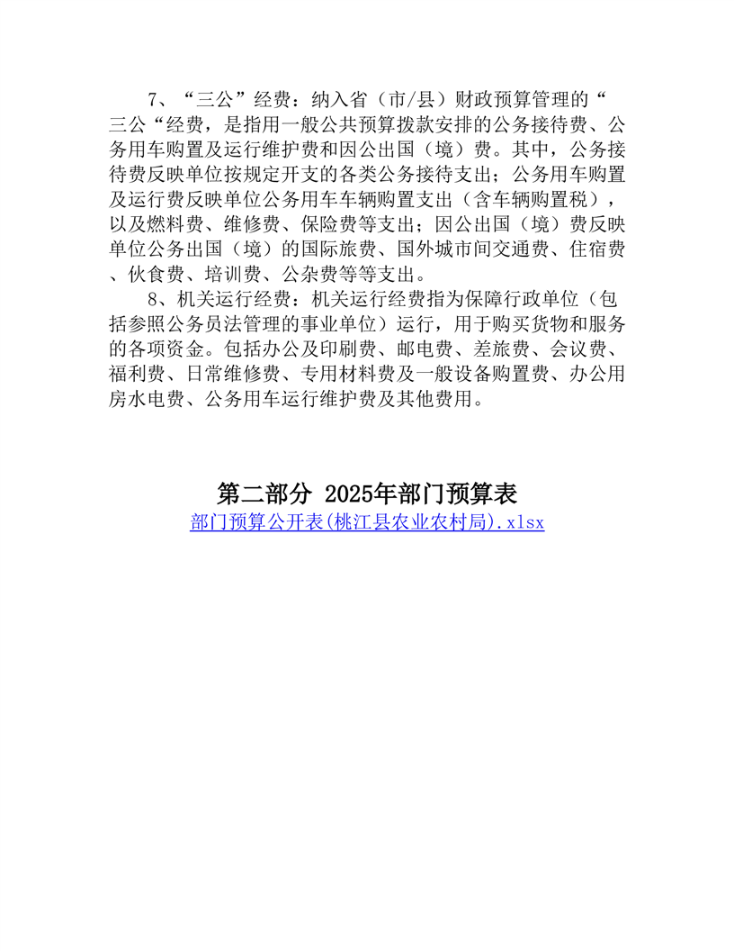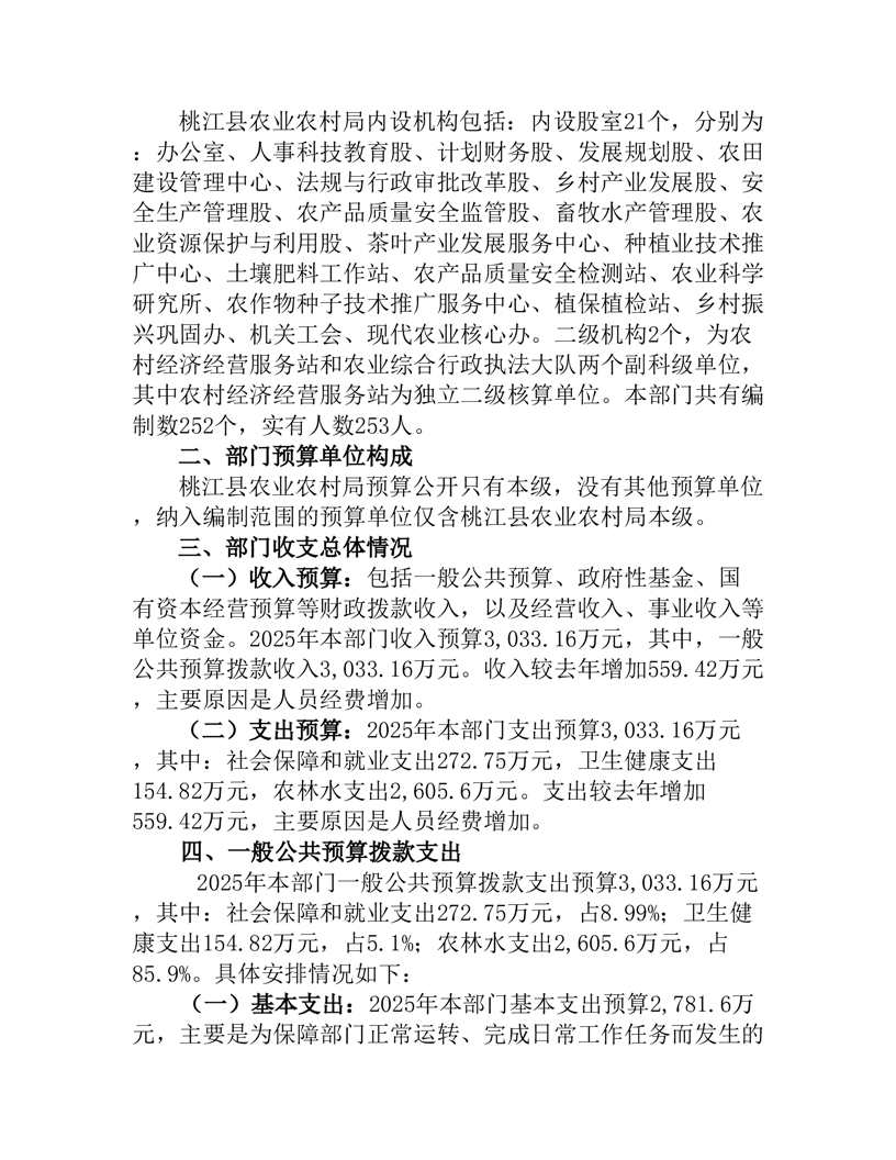 2025年度桃江县农业农村局部门预算公开说明