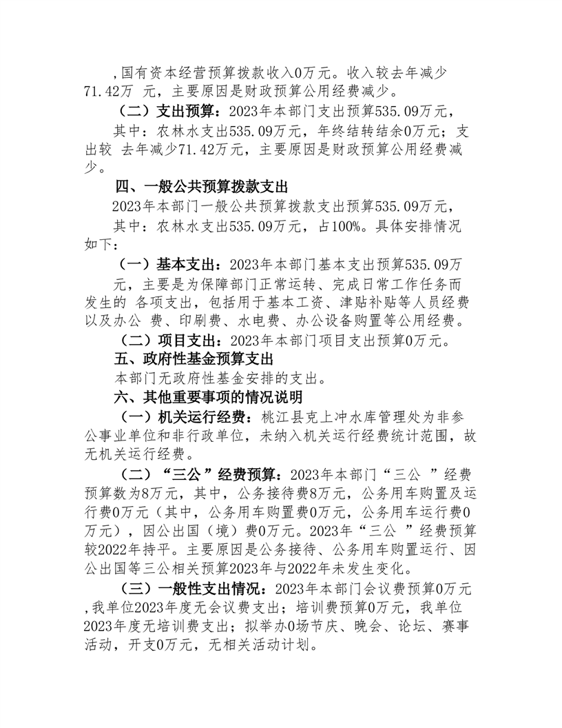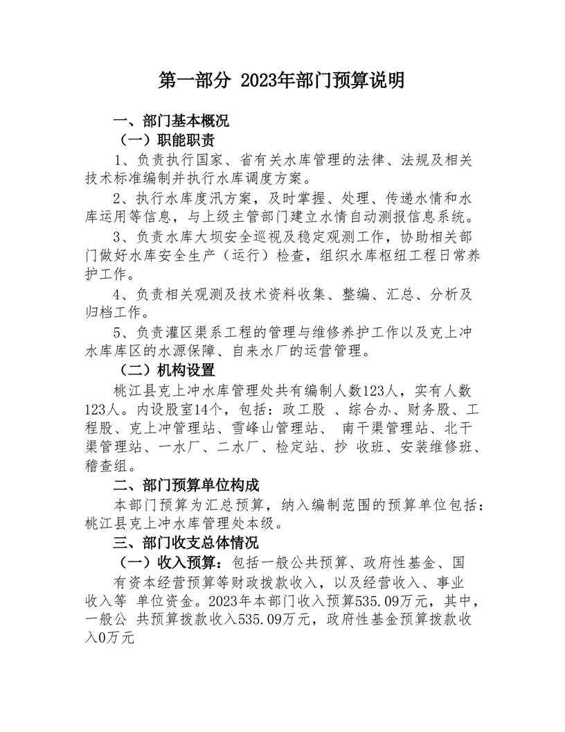 桃江县克上冲水库管理处2023年部门预算公开说明