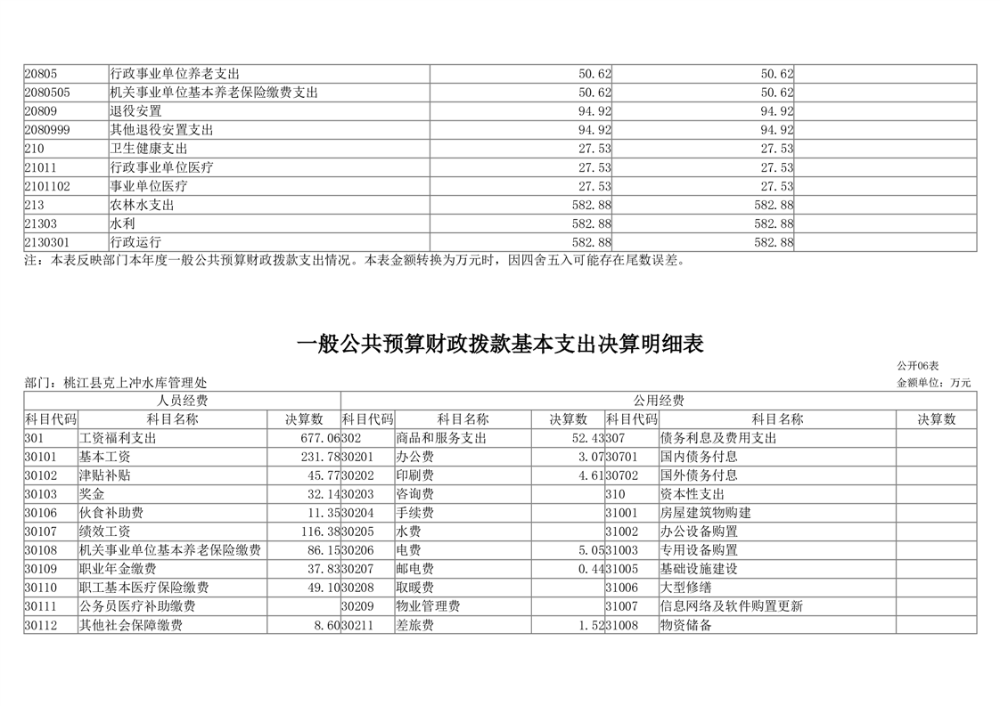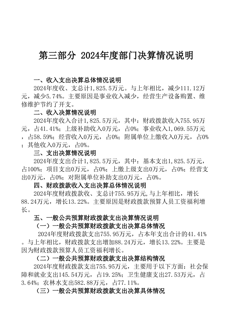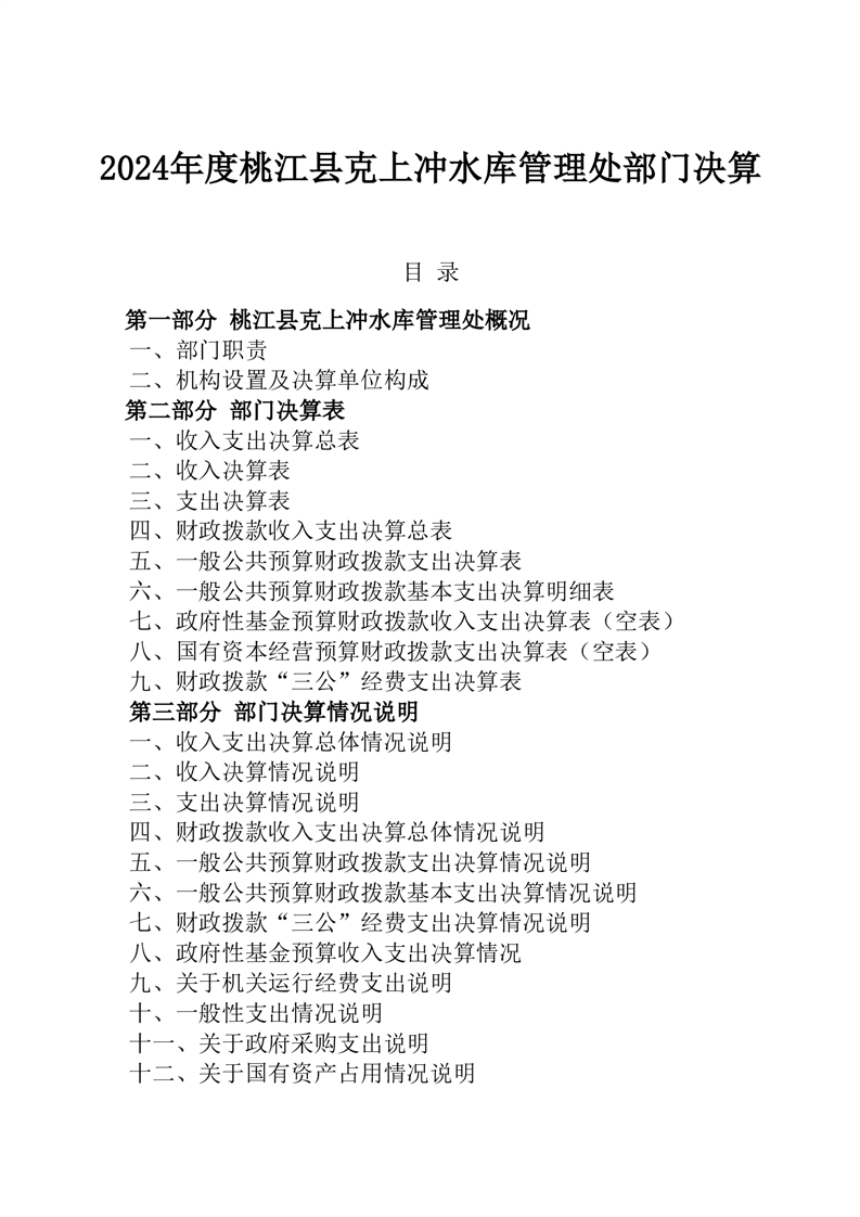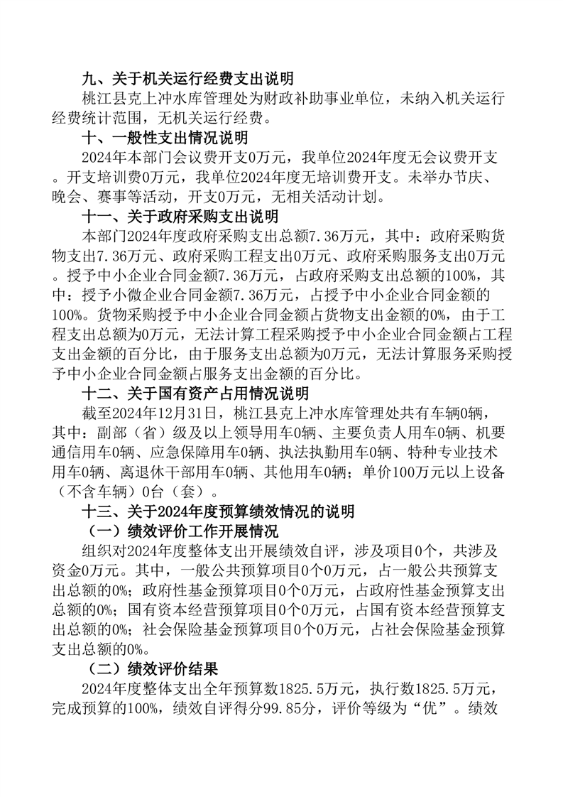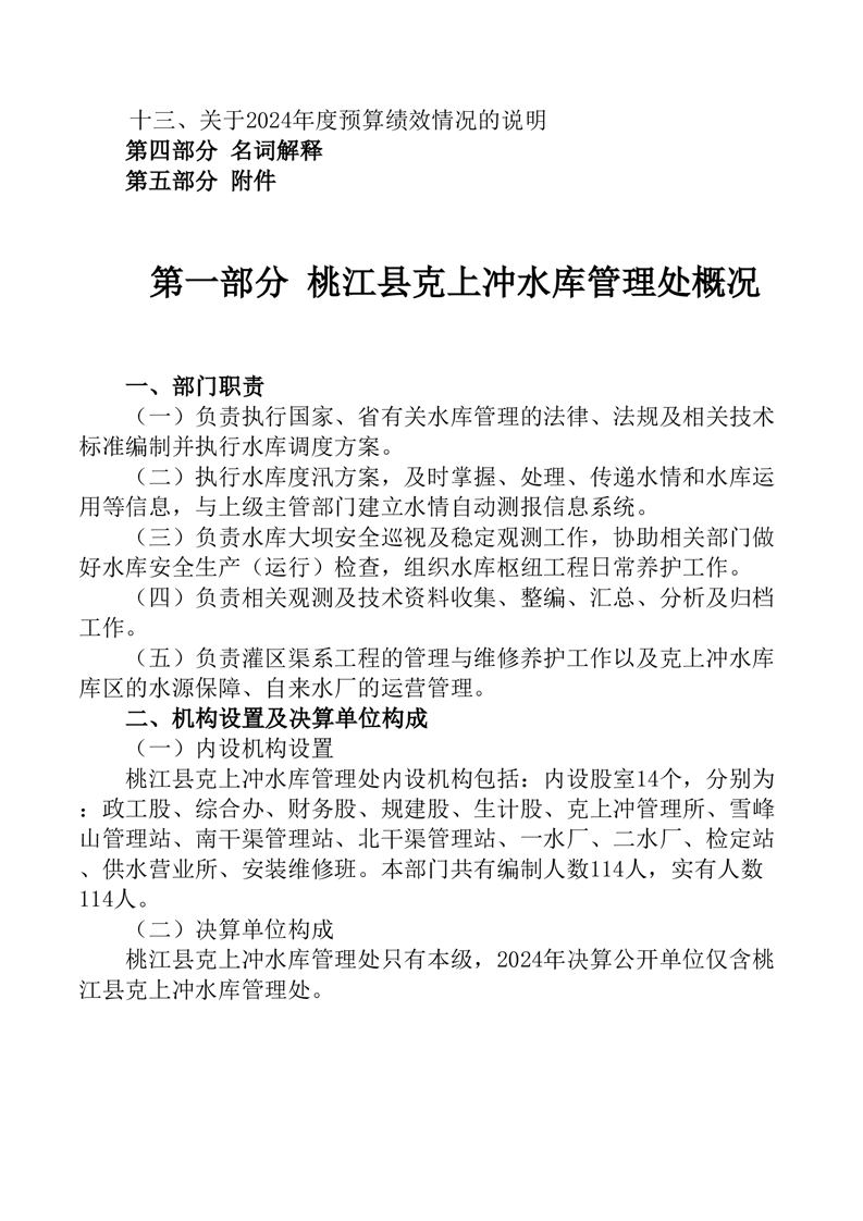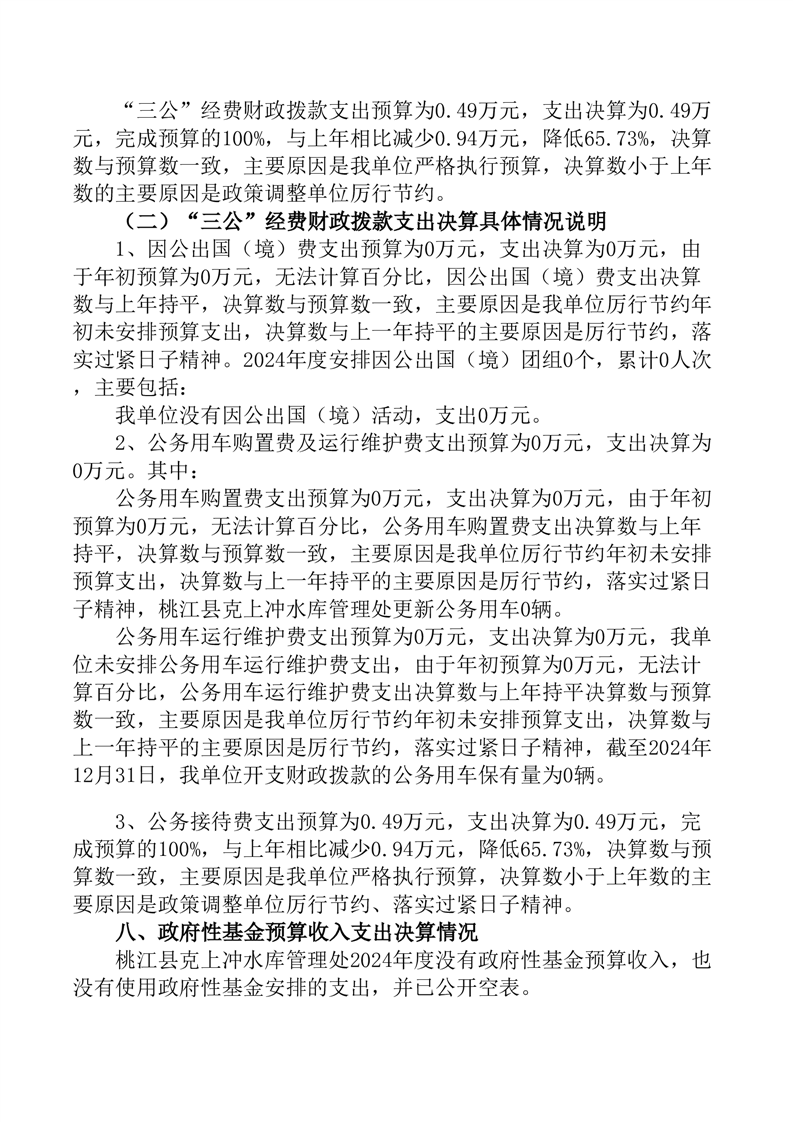 桃江县克上冲水库管理处2024年部门决算公开说明