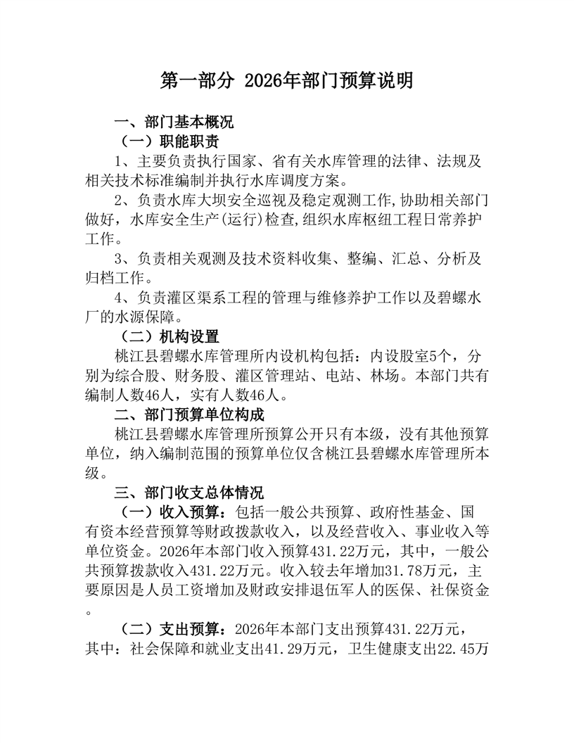 桃江县碧螺水库管理所2026年部门预算公开说明