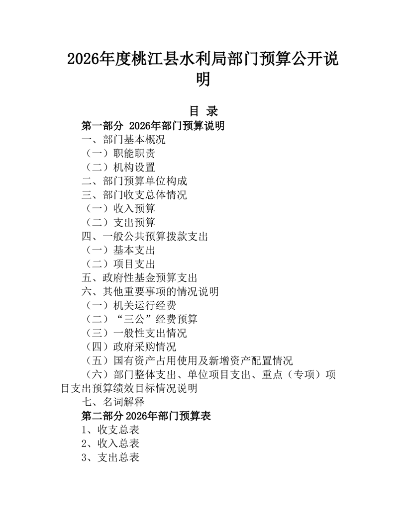 桃江县水利局2026年部门预算公开说明