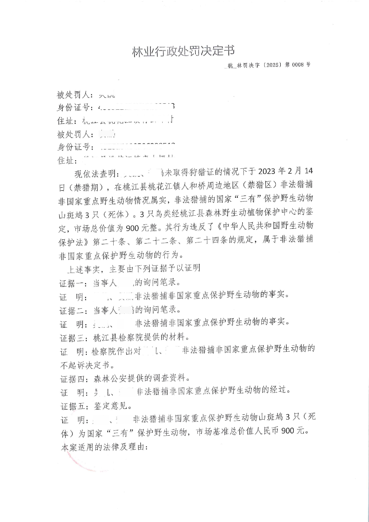 吴某某非法猎捕非国家重点保护野生动物的林业行政处罚决定书