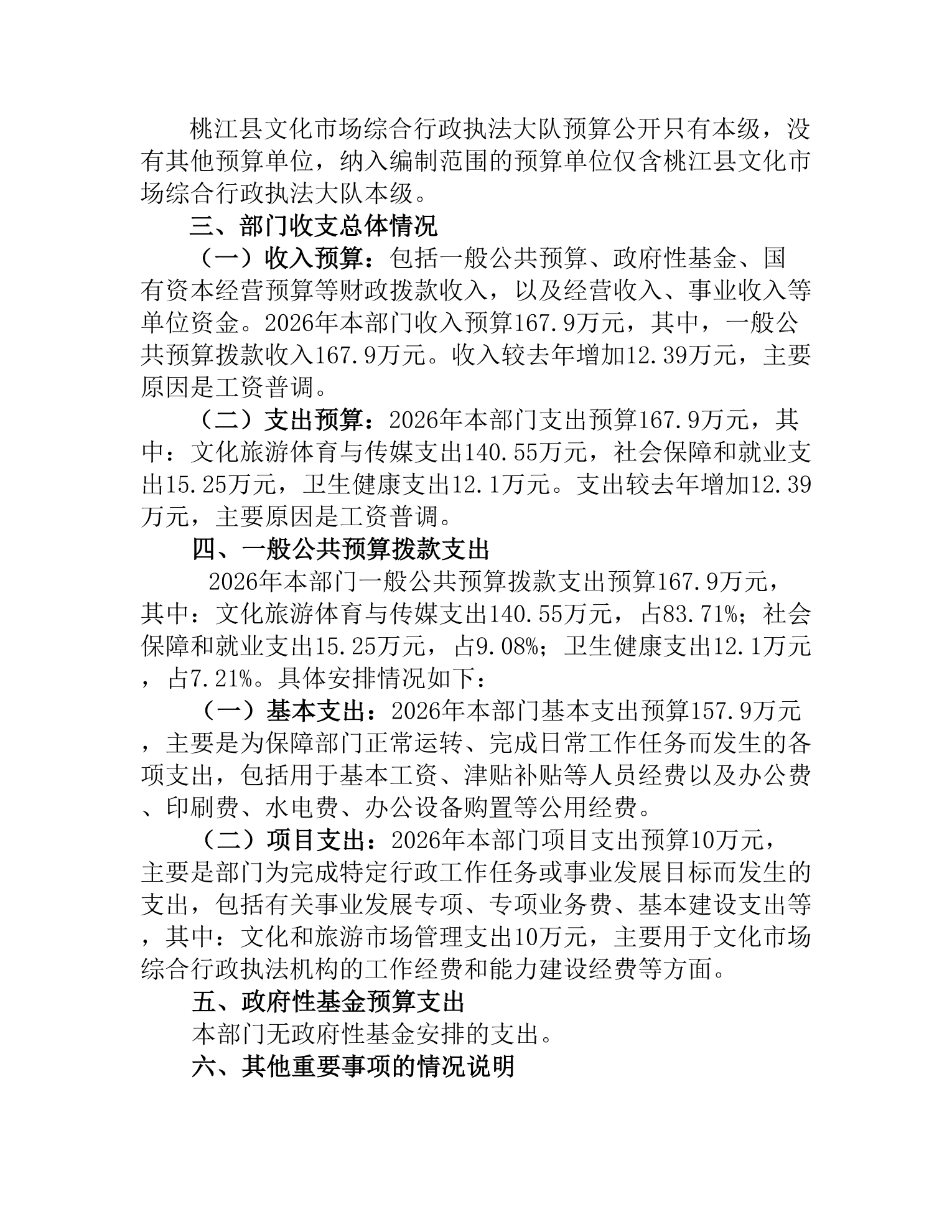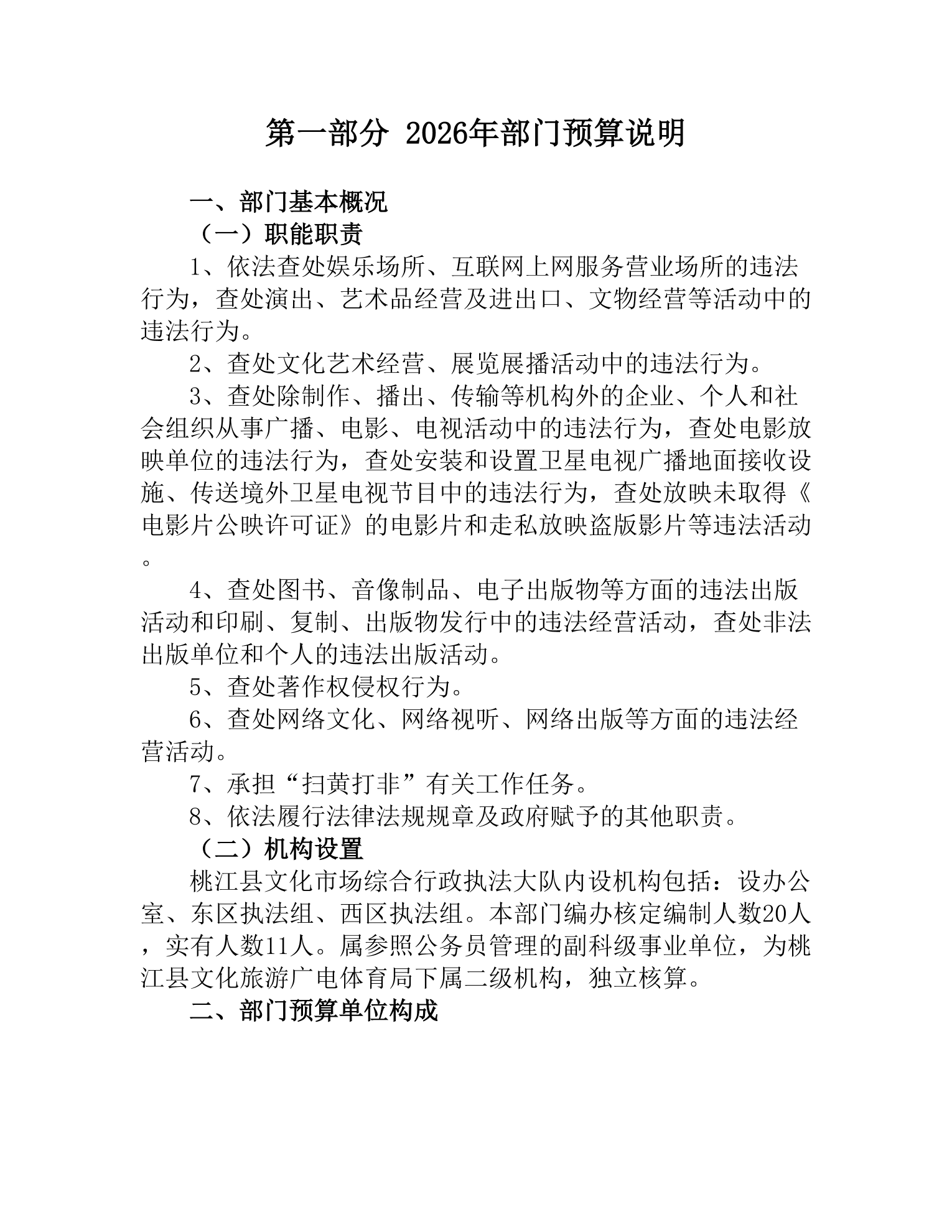 2026年度桃江县文化市场综合行政执法大队部门预算公开说明