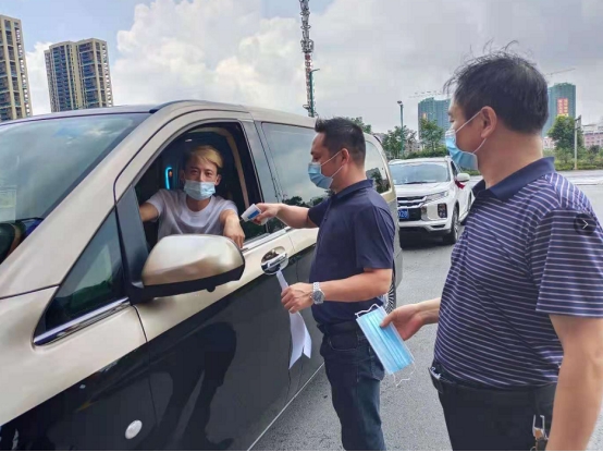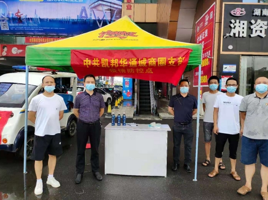 新的一波疫情发生和扩散,防疫抗疫到了一个新的关口,不断变异的病毒,让之前疫情防控取得的成果再一次面临更严峻的考验。8月6日,中共凯邦华通城商圈支部在支部书记刘益军的组织下主动请缨,接管商圈内的疫情防控工作,在辖区市场监管所执法人员的指导下,该党支部书组织5名党员,2名入党积极分子组成疫情防控工作队,在居然之家、中央大道设立临时防疫点,给过往人员进行体温测量,给未佩戴口罩的人员免费发放口罩,出动巡逻车,在商圈巡回宣传防疫知识,提升群众疫情防控意识。