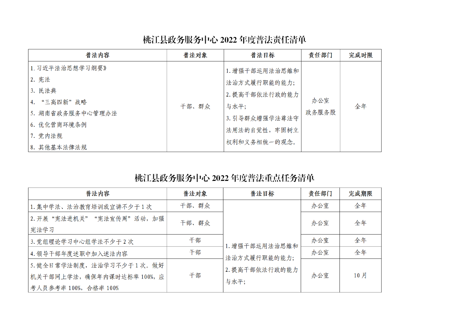 桃江县政务服务中心2022年度普法责任清单和普法重点任务清单情况
