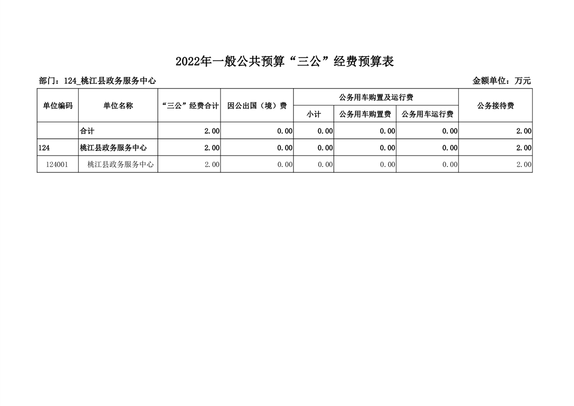 桃江县政务服务中心2022年一般公共预算“三公”经费预算表