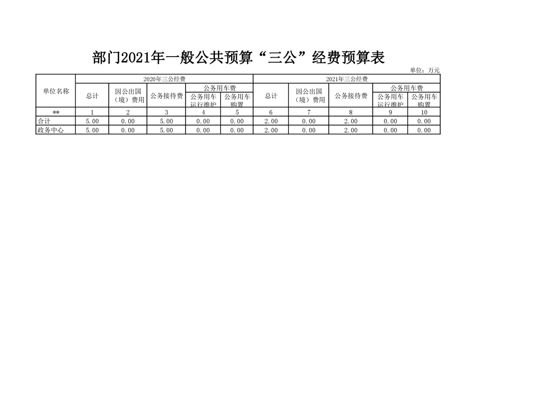 桃江县政务服务中心2021年一般公共预算“三公”经费预算表