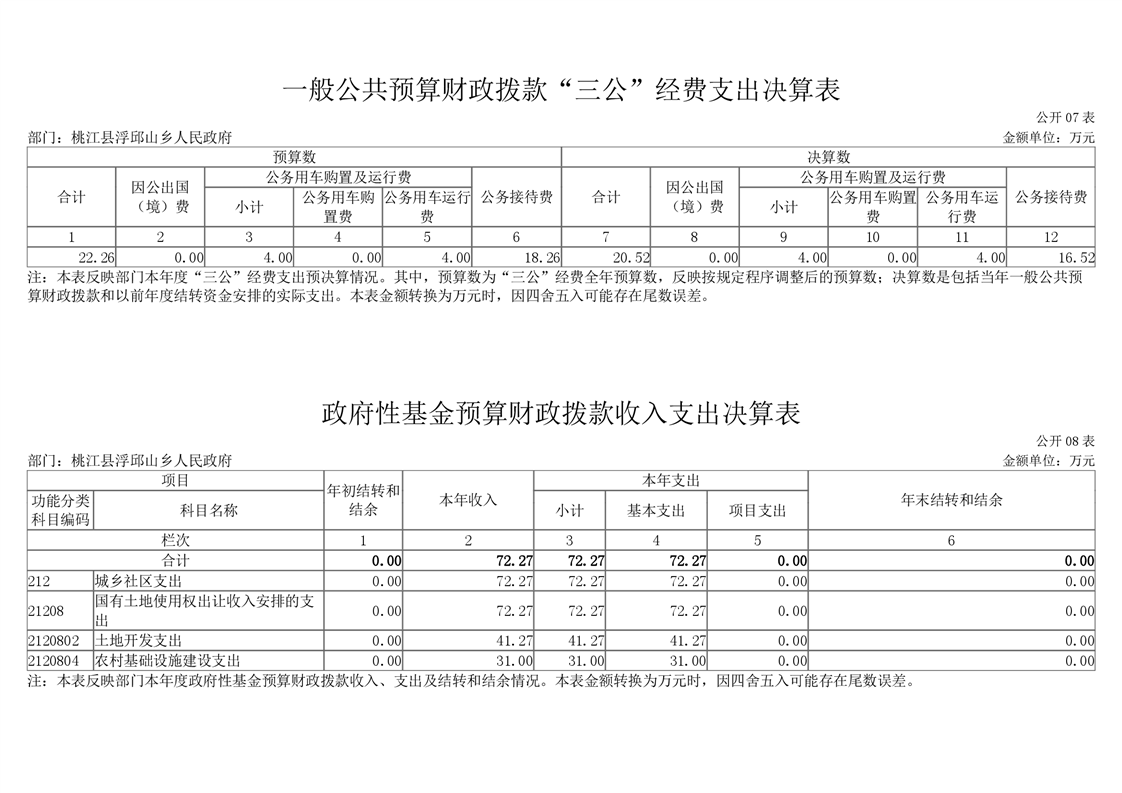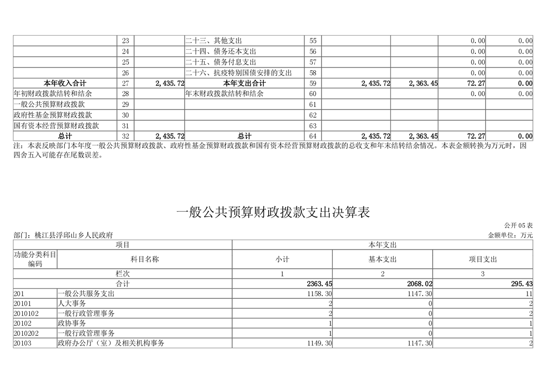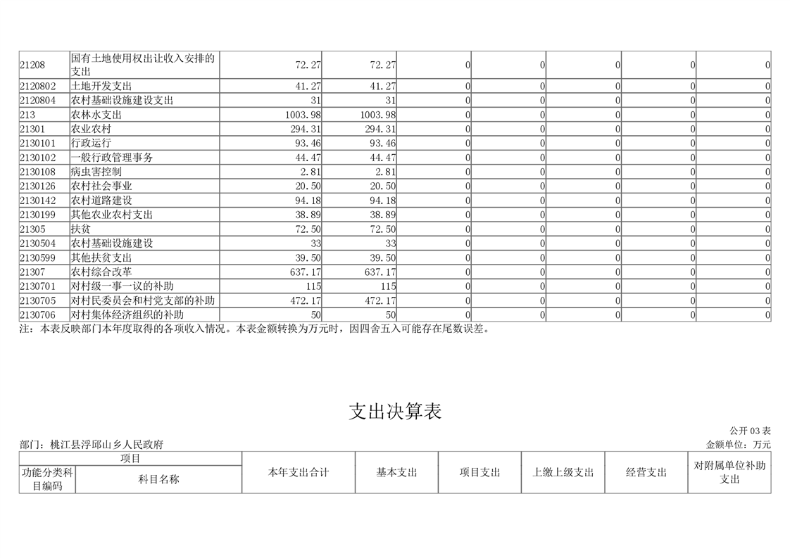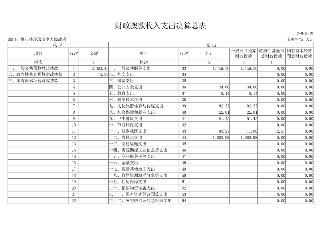 2020年度桃江县浮邱山乡人民政府部门决算