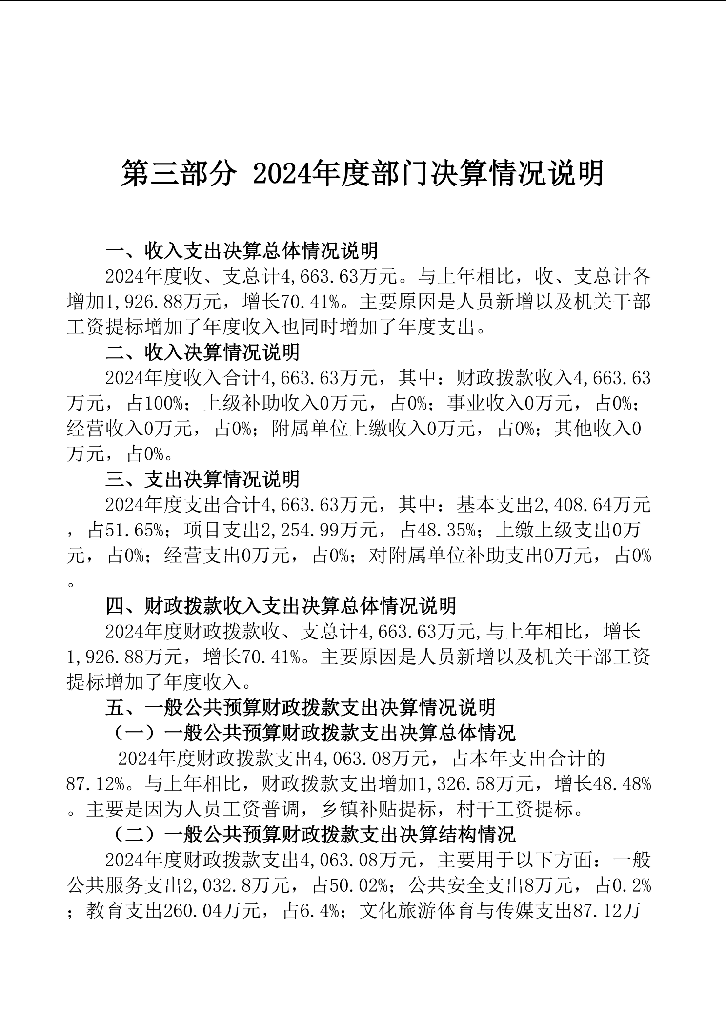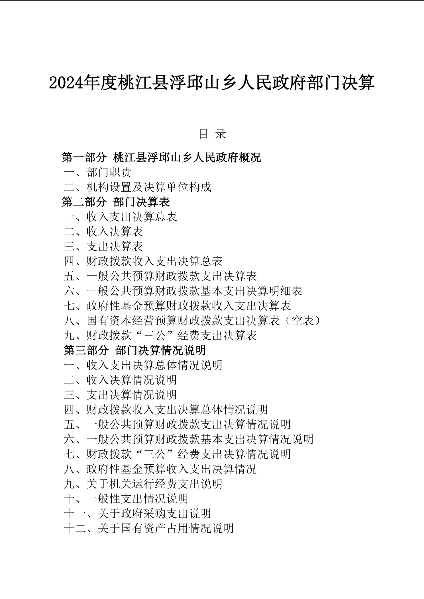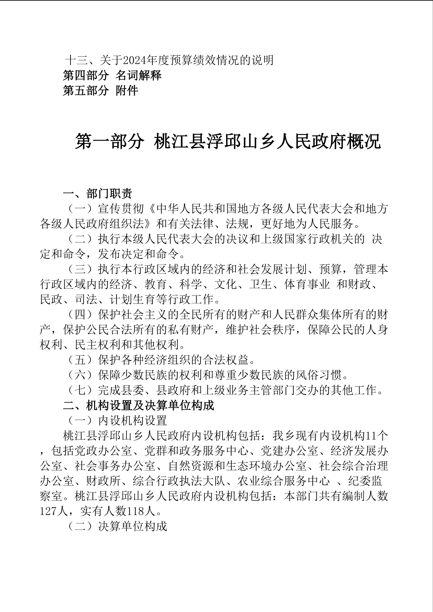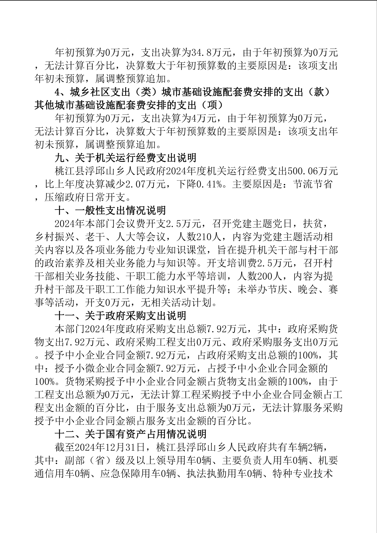 2024年浮邱山乡人民政府部门决算公开说明
