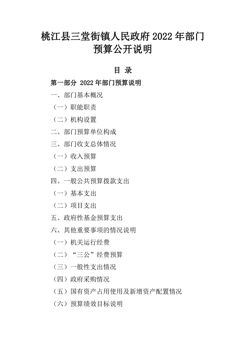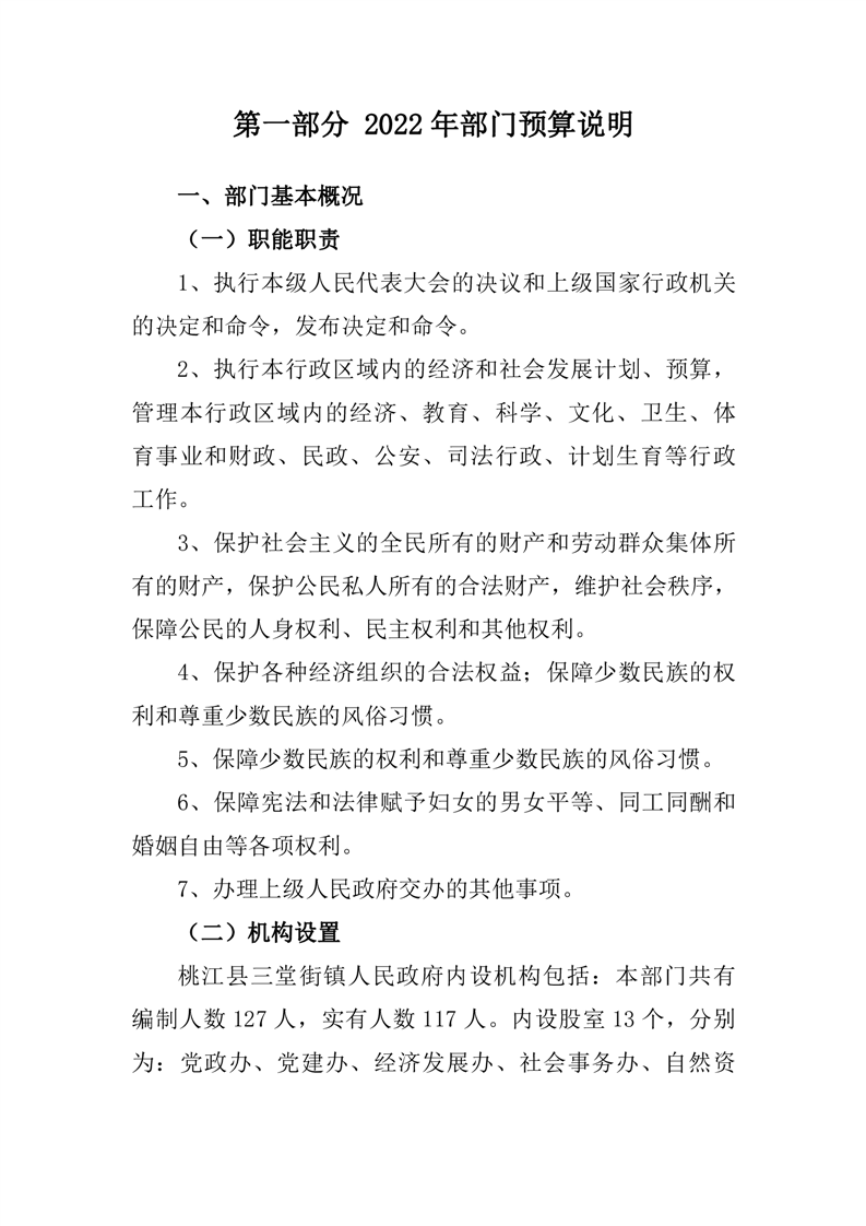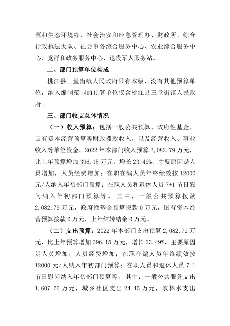 桃江县三堂街镇人民政府 2022 年部门预算公开说明