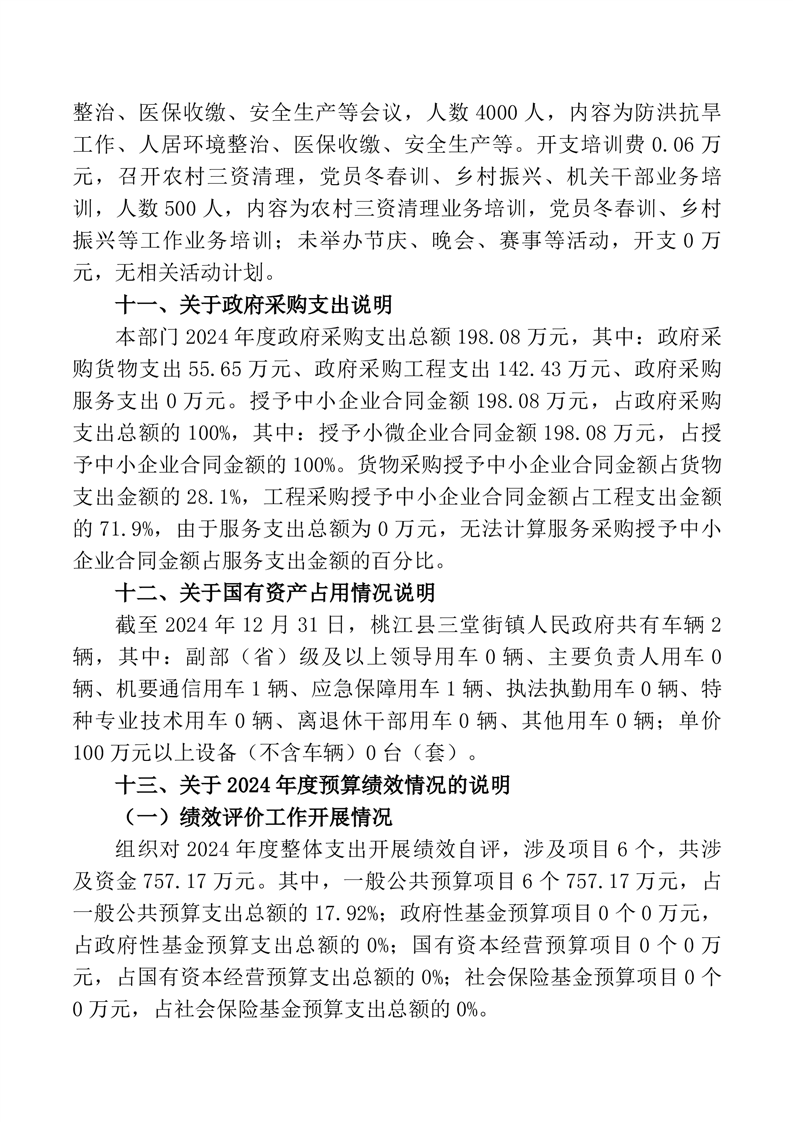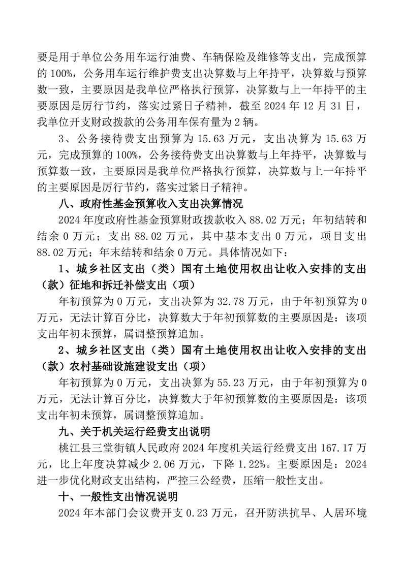 桃江县三堂街镇人民政府2024年部门决算公开说明
