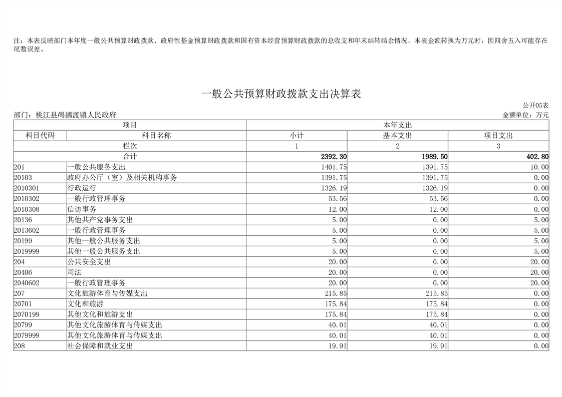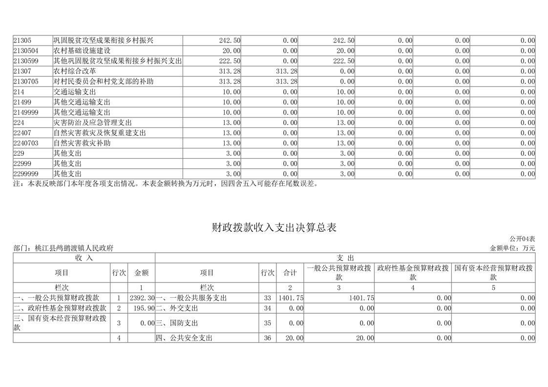 2023年度桃江县鸬鹚渡镇人民政府部门决算