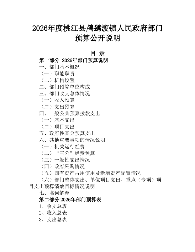 2026年度桃江县鸬鹚渡镇人民政府部门预算公开说明