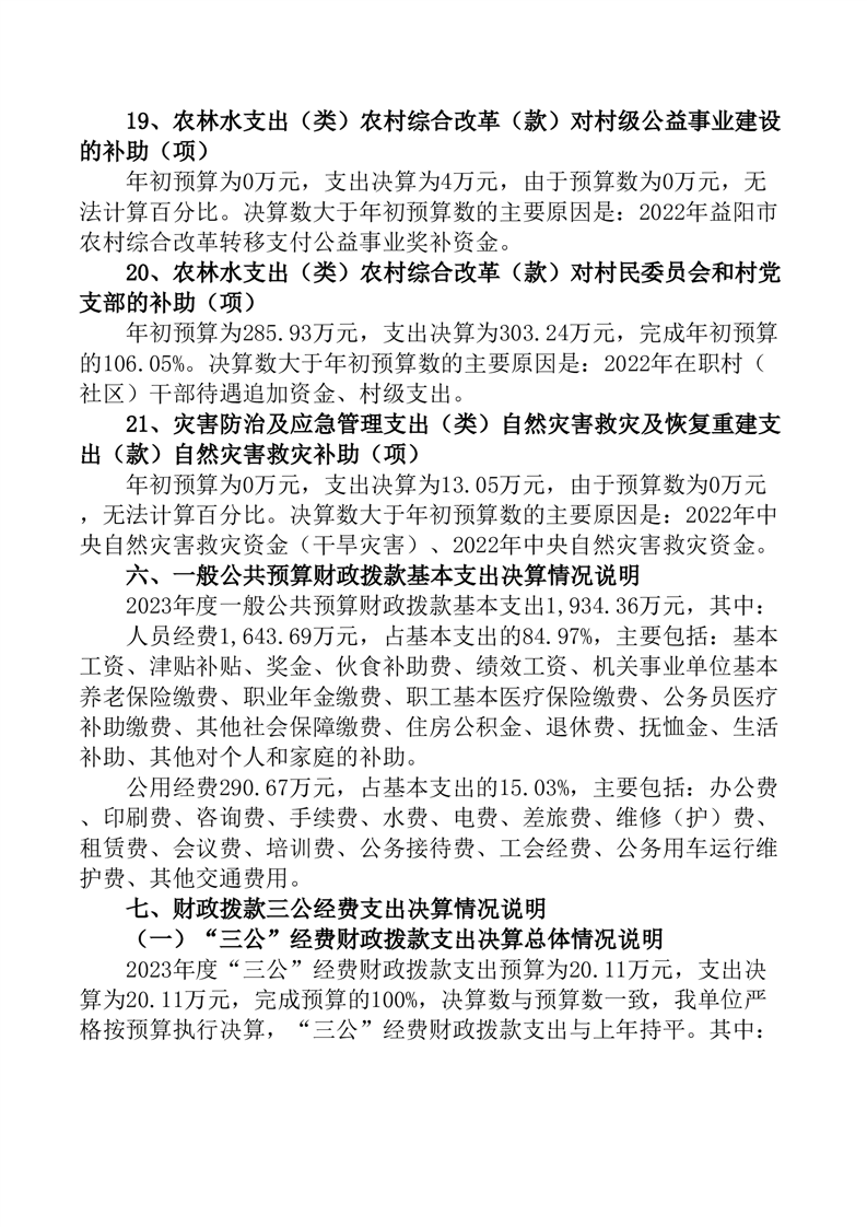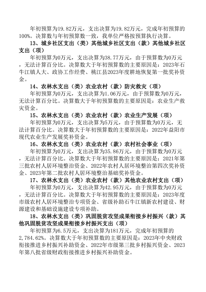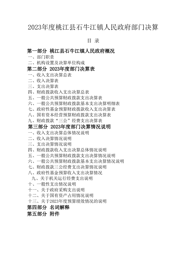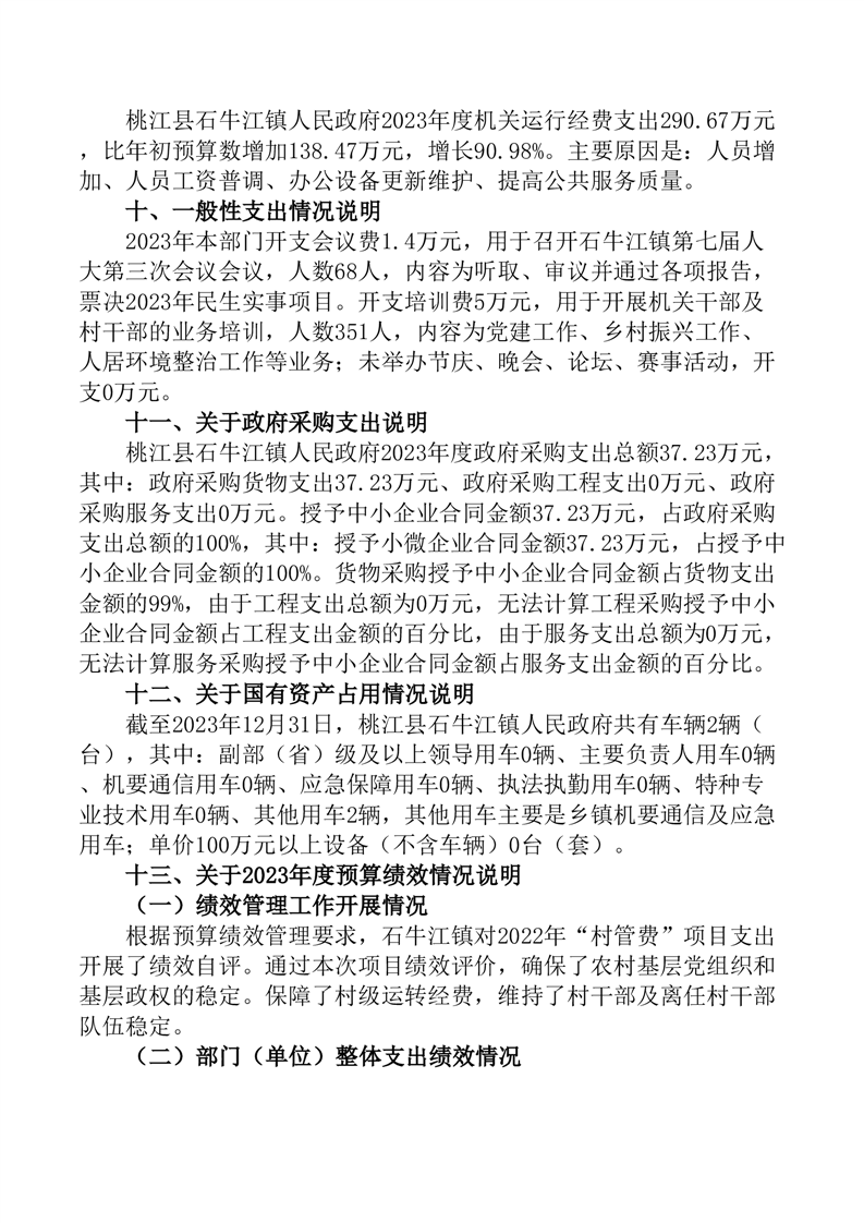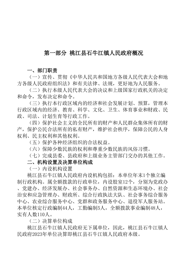桃江县石牛江镇人民政府2023年部门决算公开说明
