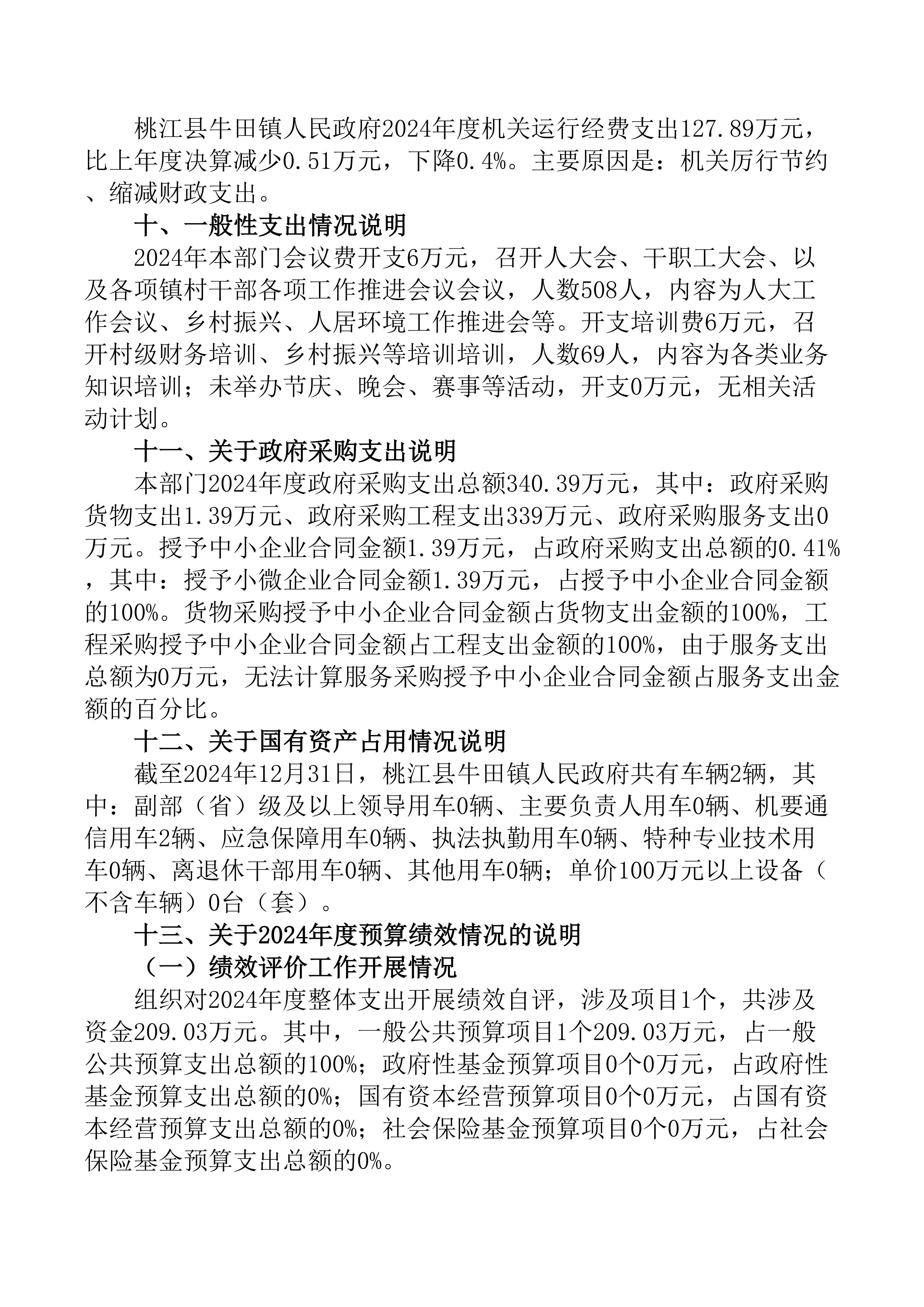 桃江县牛田镇人民政府2024年部门决算公开说明