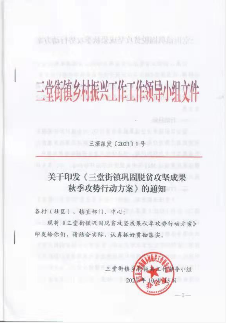 三堂街镇巩固脱贫攻坚成果秋季攻势行动方案
