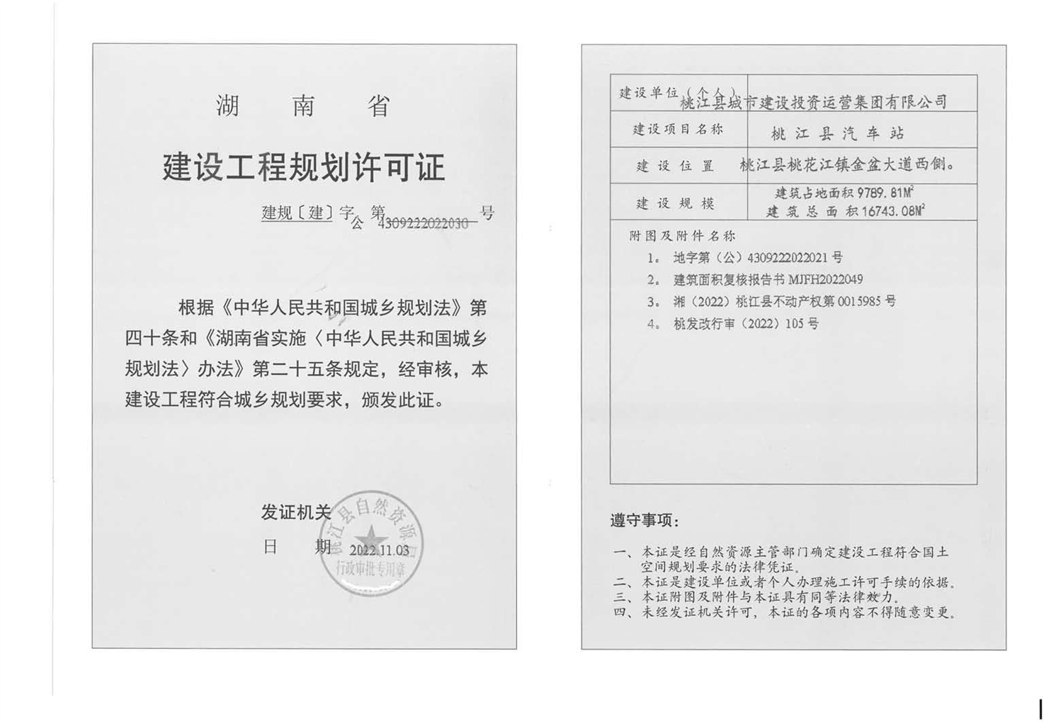 桃江县城市建设投资运营集团有限公司建设工程规划许可证