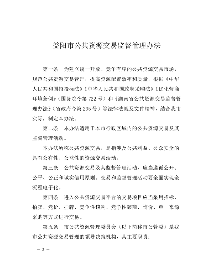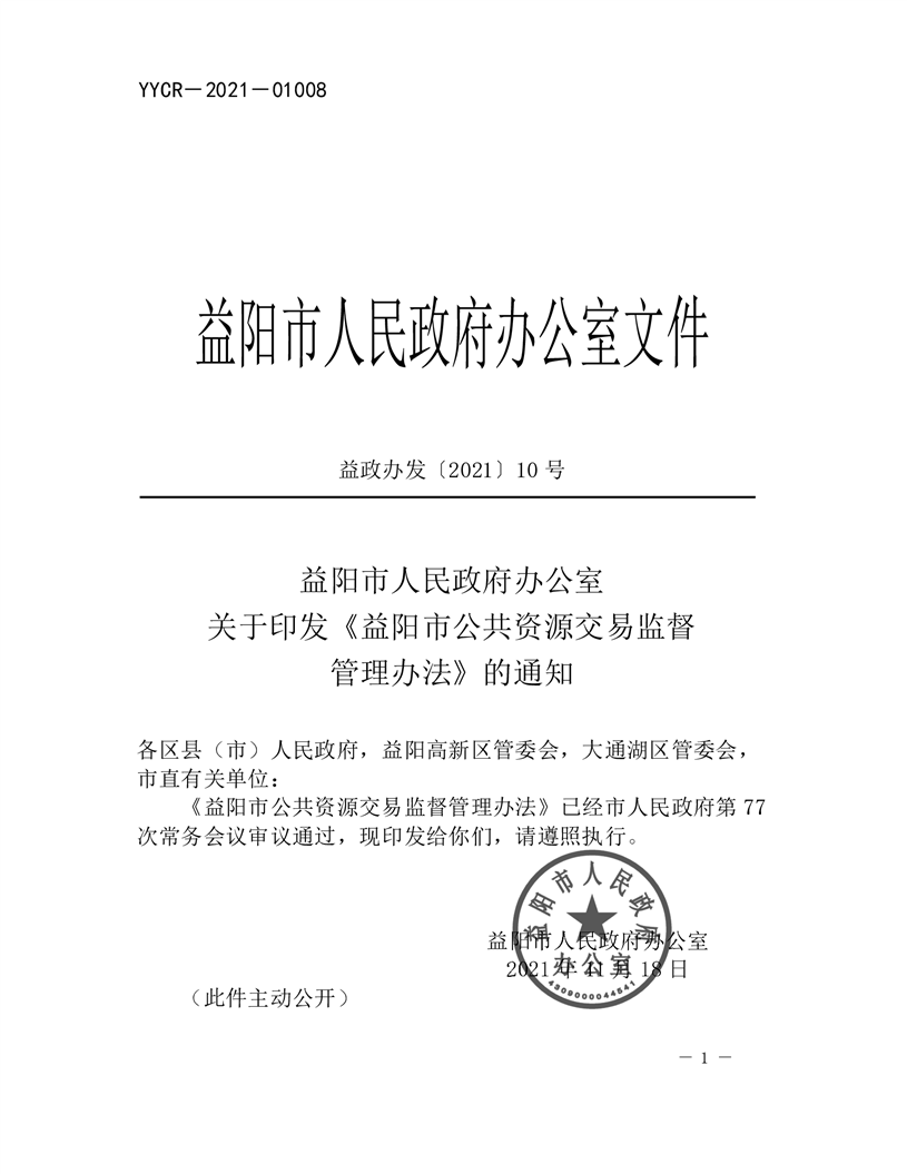 益阳市人民政府办公室关于印发《益阳市公共资源交易监督管理办法》的通知