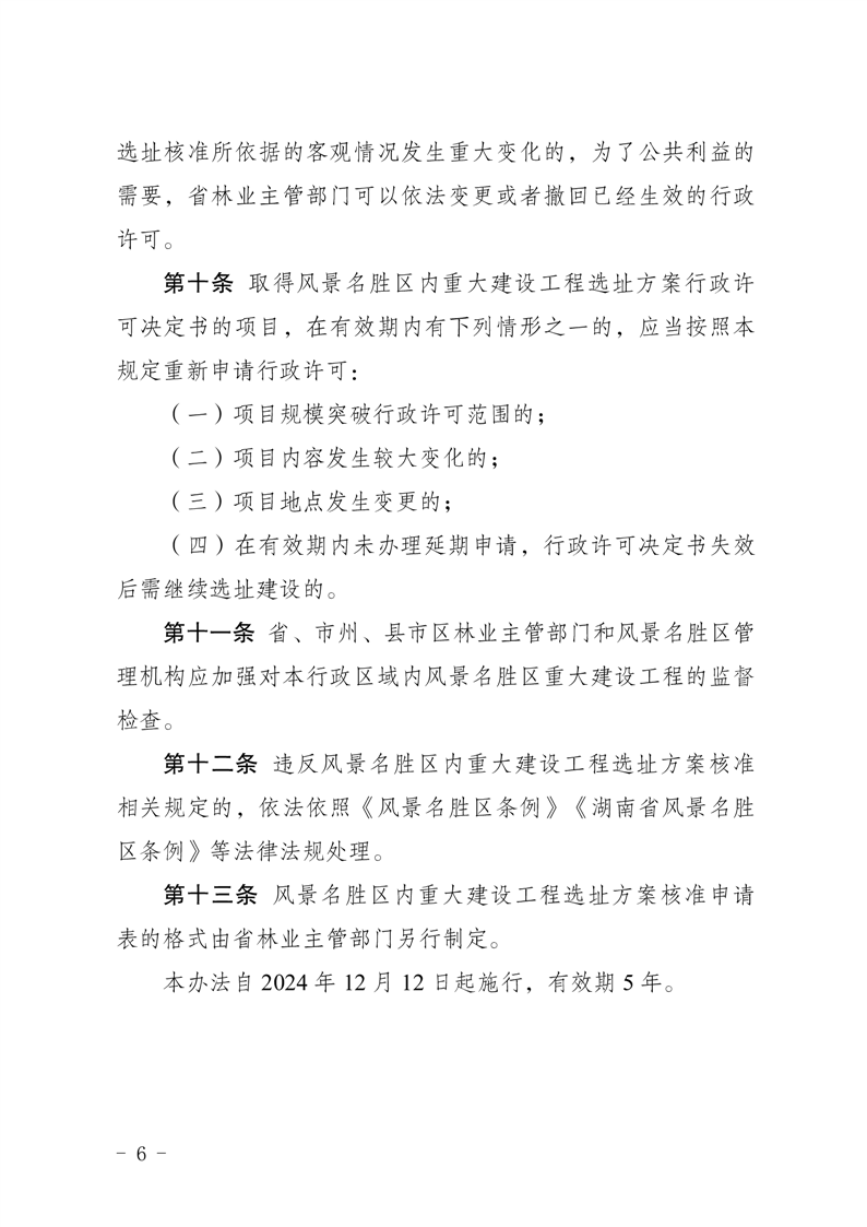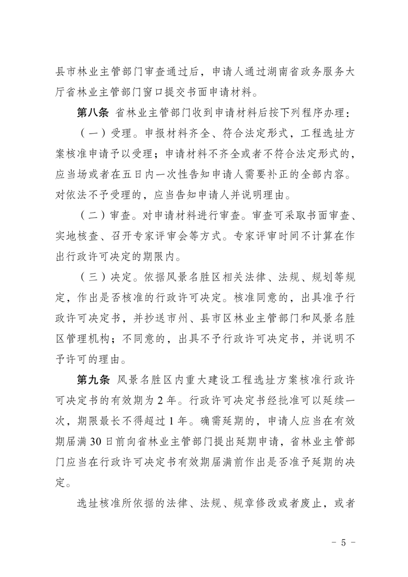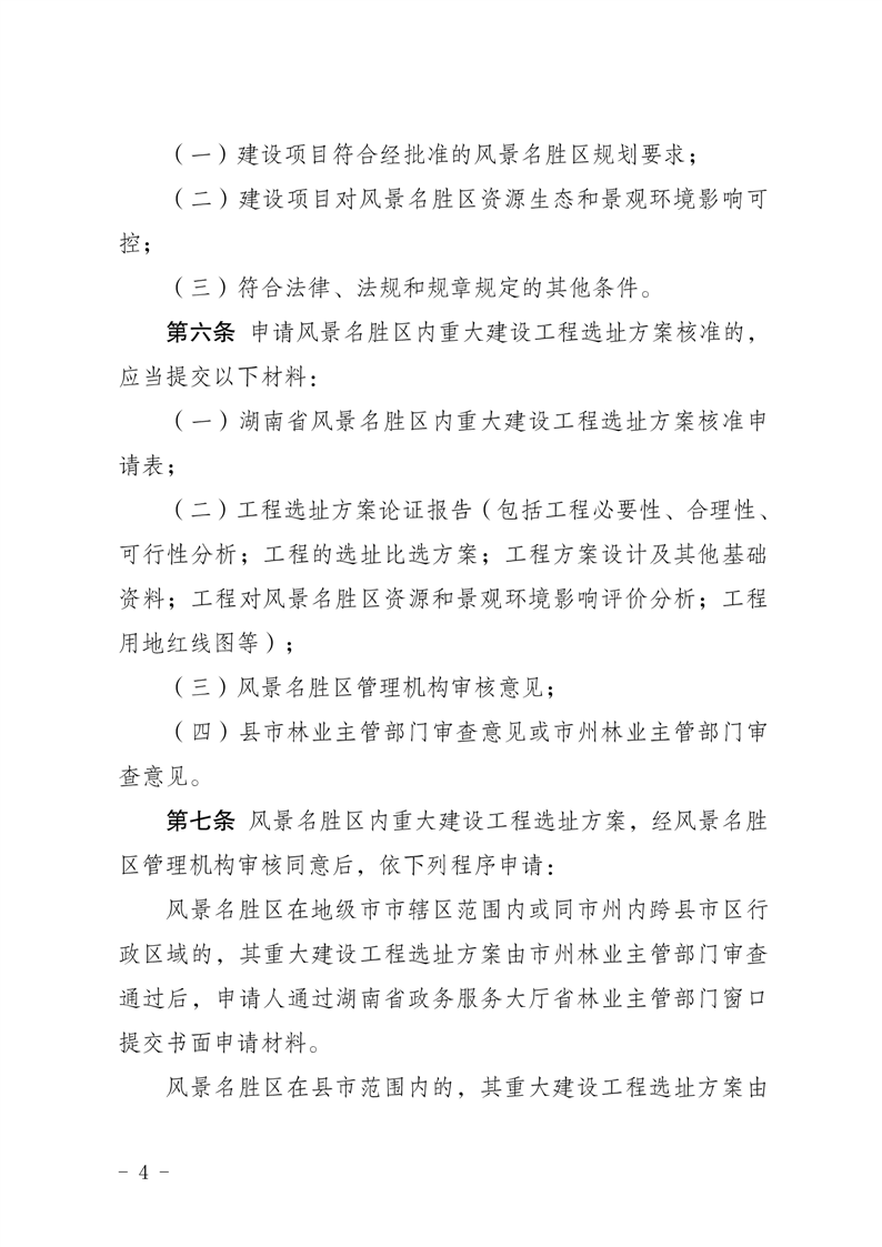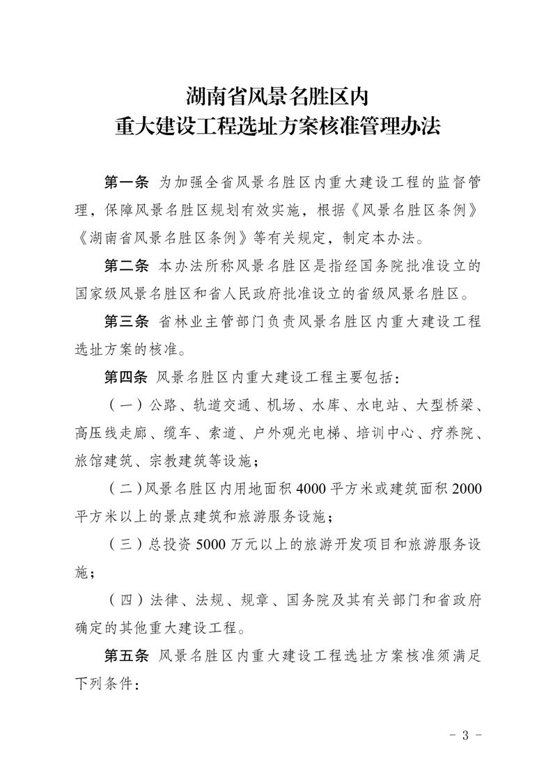 湖南省风景名胜区内 重大建设工程选址方案核准管理办法
