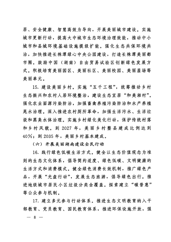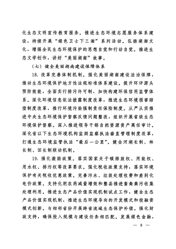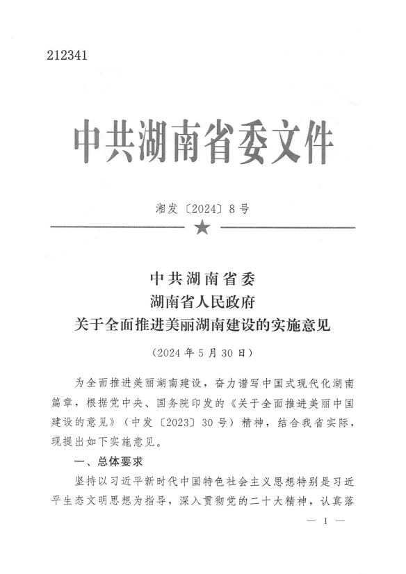 中共湖南省委 湖南省人民政府关于全面推进美丽湖南建设的实施意见