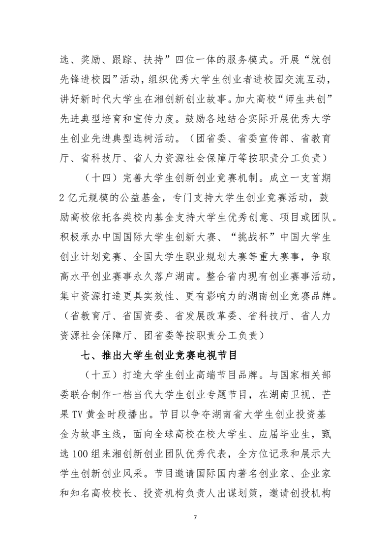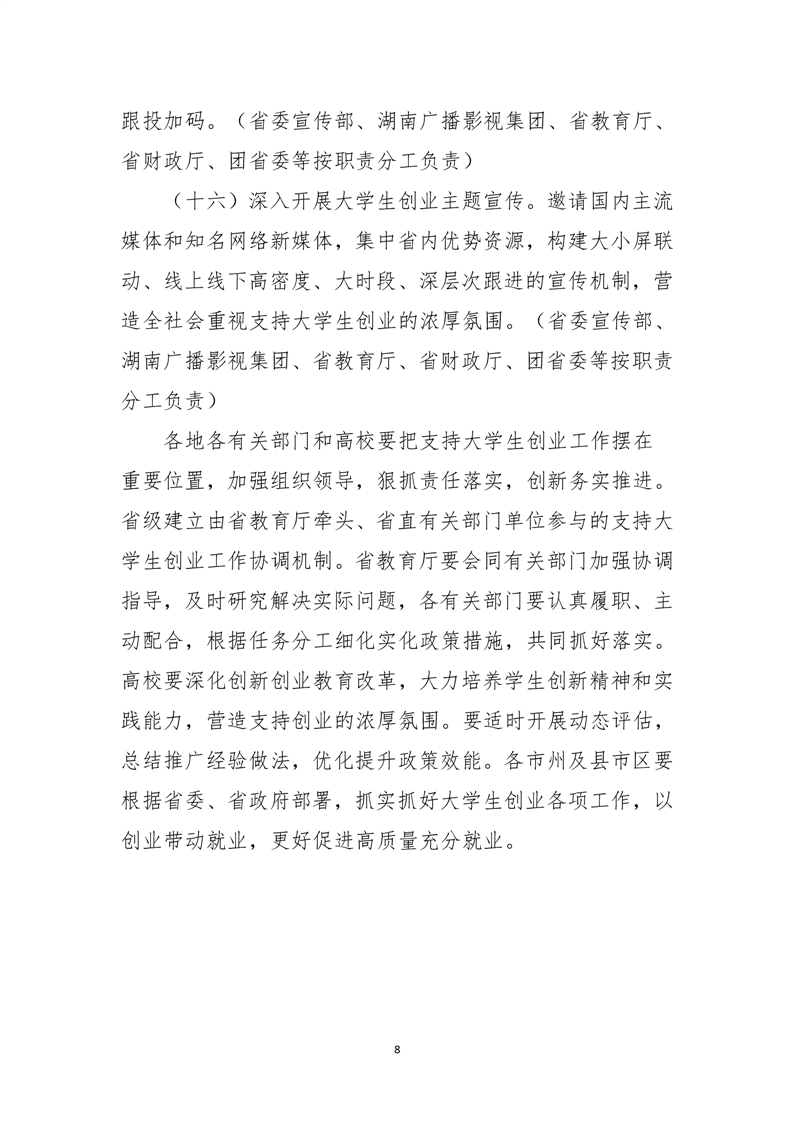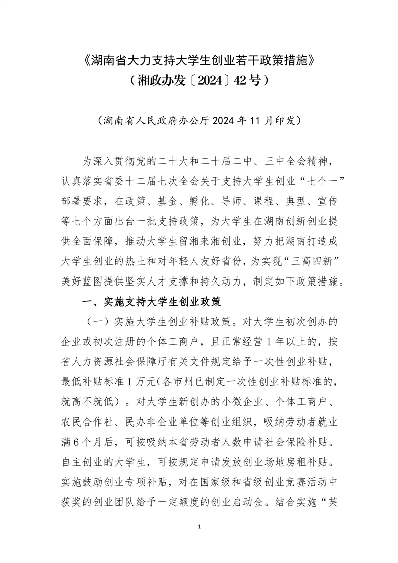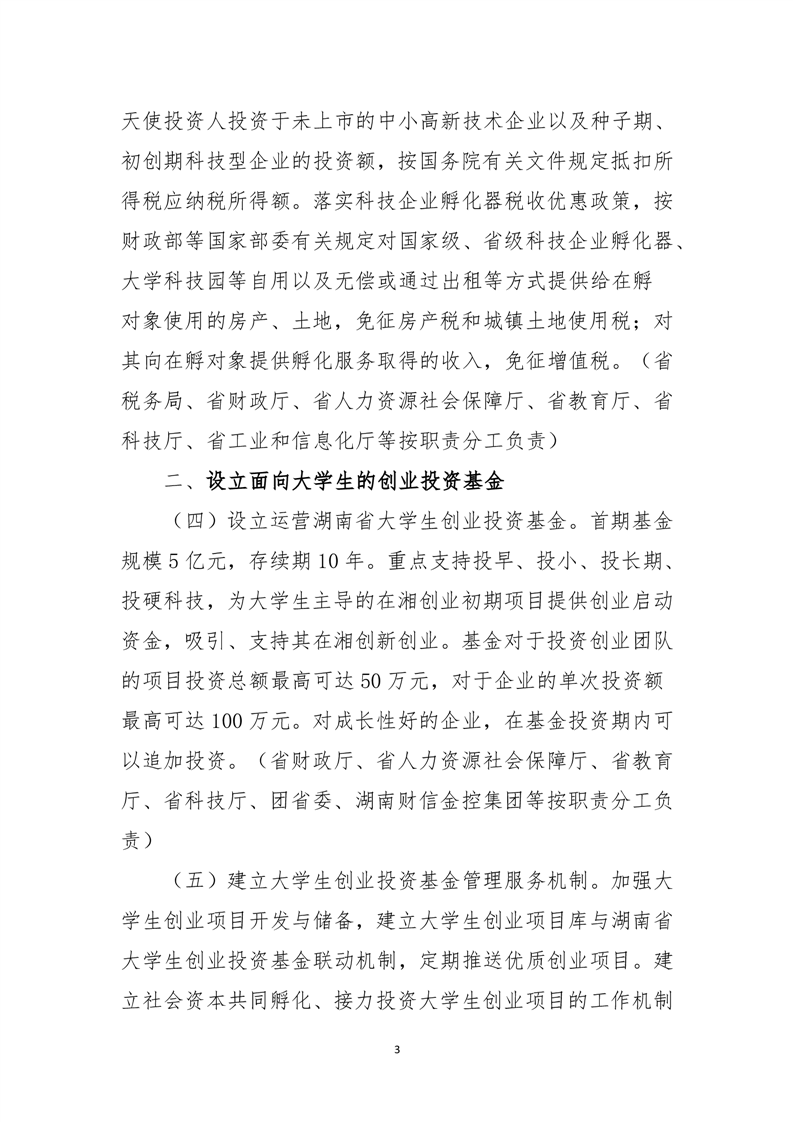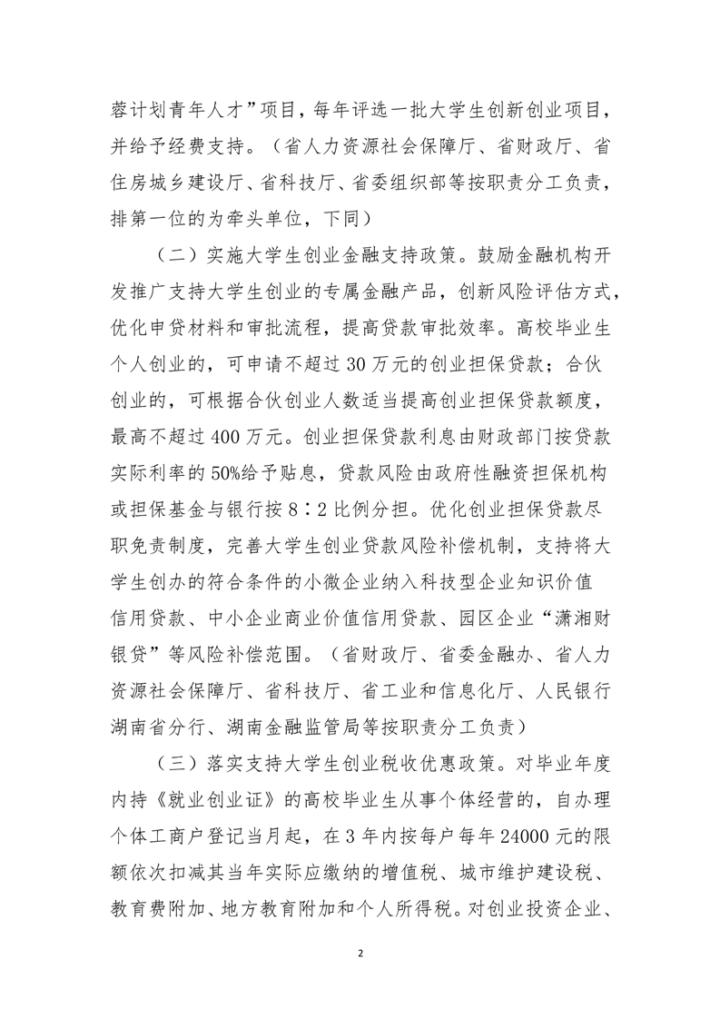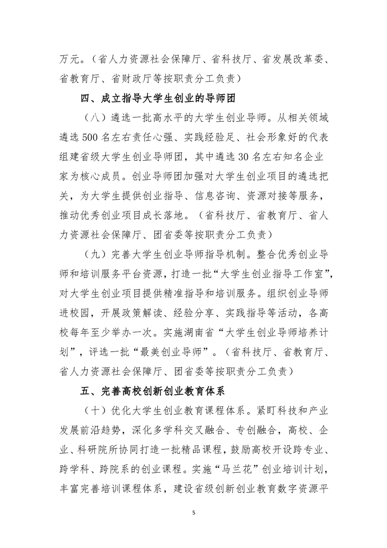 湖南省大力支持大学生创业若干政策措施