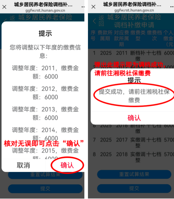 需要提醒的是,根据银行有关规定,2019年度以前的一次性多个年度补缴(含提档补缴)的总金额一般不超过5万元,超过的可分2次进行操作;2019年以后年度的可直接在湘税社保APP上进行缴费(补缴)操作。 |