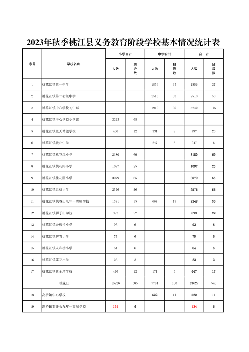 2023年秋季桃江县义务教育阶段学校基本情况统计表