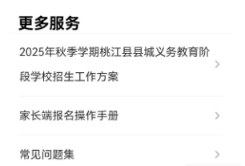 (二)仔细阅读政策 进入首页的更多服务,请家长仔细阅读对应区域的2025年秋季县城义务教育阶段招生工作方案,操作方面有疑问可查看家长操作手册或常见问题集,熟悉政策及平台操作步骤后再进行报名。