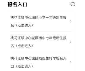 (三)报名入口选择 小学一年级新生点击桃花江镇中心城区小学一年级新生报名入口;初一新生点击桃花江镇中心城区初中七年级新生报名入口;小学二年级至六年级、初中八年级至九年级插班生报名点击桃花江镇中心城区插班生转学报名入口。要看清报名入口,根据自己的真实情况选择相对应的入口报名,防止选错报名通道影响学位申报。
